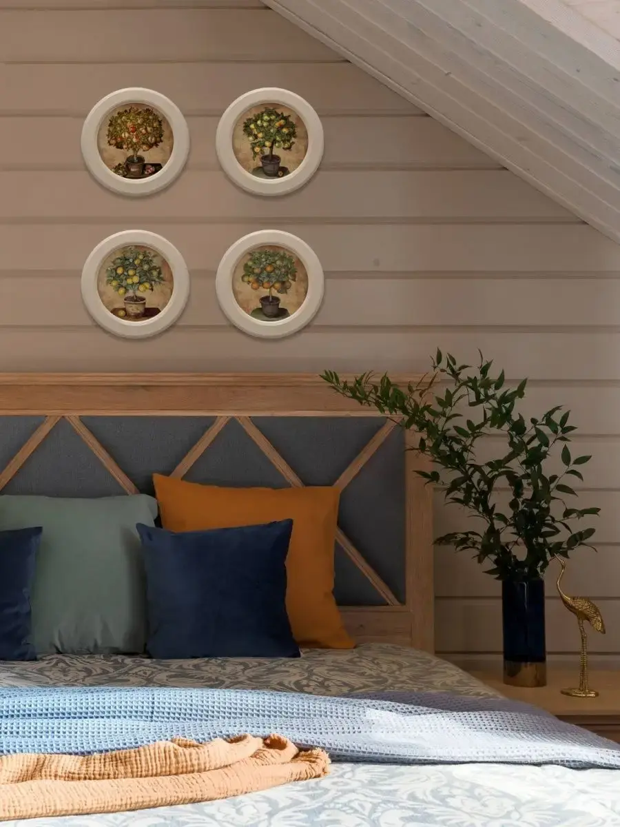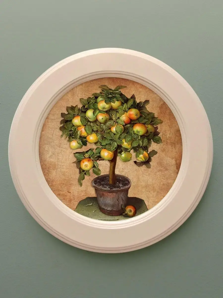 Настенный декор в нежных пастельный тонах с фруктовыми деревьями в молочной раме раме. Картина напечатана на натуральном холсте, покрыта матовым лаком в круглой молочной раме станет прекрасным украшением интерьера. Множество вариантов дает возможность создать собственную коллекцию. Картины прекрасный подарок родным и знакомым. Настенные картины с изображением фруктов для украшения дома и дачи. Эта не большая картина станет стильным акцентом в интерьере. Она идеально подойдет для оформления стен в различных помещениях: от кухни до спальни, от гостиной до прихожей. Настенное панно выполнено на холсте и отличается яркими цветами, что придаст уют и свежесть любому дому или квартире. Декоративное оформление в рамке добавит элегантности и завершенности, делая картину не только предметом декора, но и важной частью атмосферы вашего пространства. Это решение отлично впишется в интерьер офиса, зала или любой комнаты, создавая ощущение счастья и гармонии. Пусть данное предметы искусства придаст вашему дому индивидуальность и изысканный стиль.