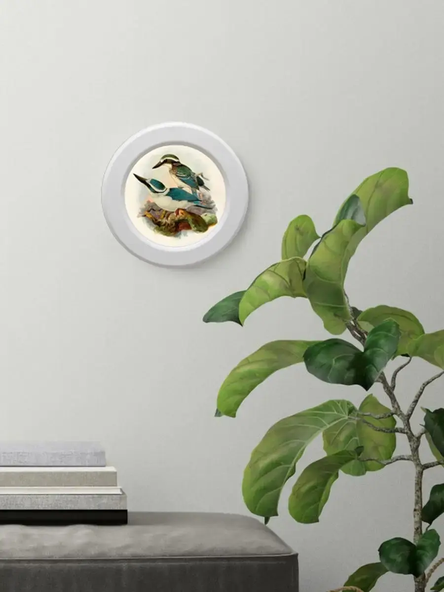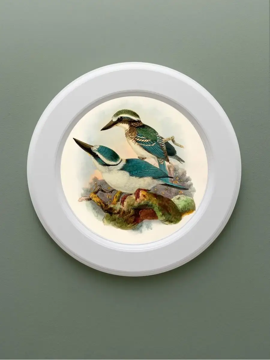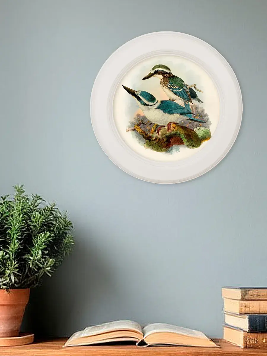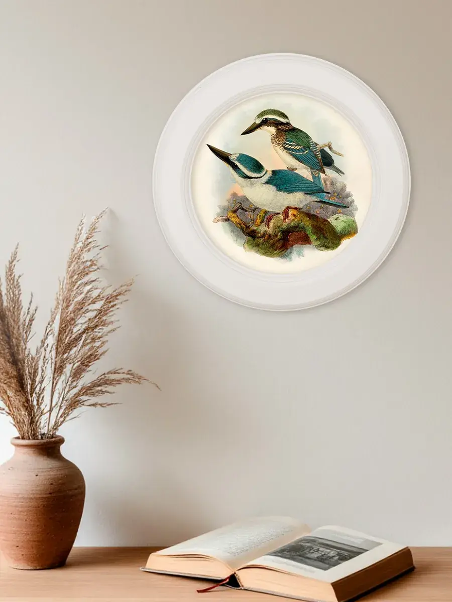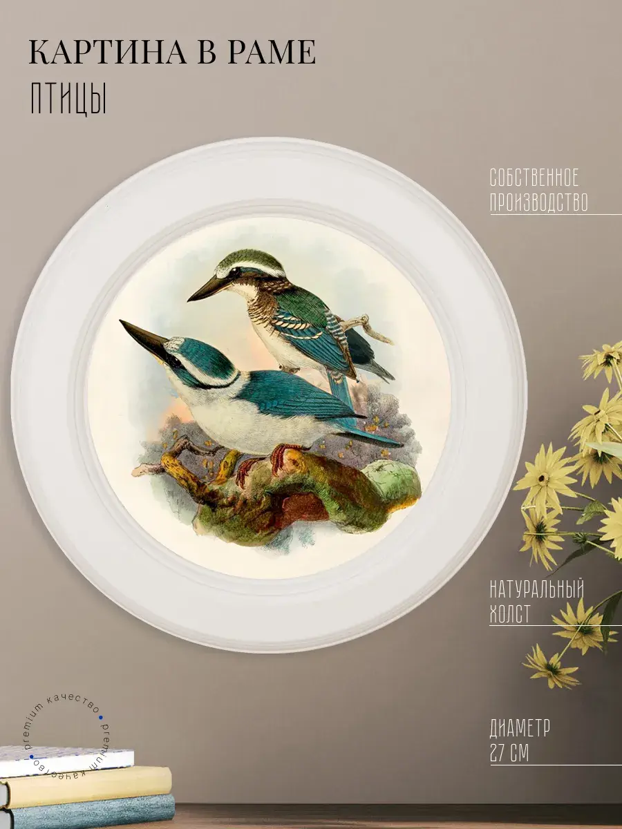 Настенный декор в нежных пастельный тонах с изящными птичками в белоснежной раме. Картина напечатана на натуральном холсте, покрыта матовым лаком в круглой белой раме станет прекрасным украшением интерьера. Множество вариантов дает возможность создать собственную коллекцию. Картины с птичками прекрасный подарок родным и знакомым. Настенные панно с изображением птиц для украшения дома и дачи, добавят уюта на кухне, гостиной, прихожей и в детской комнате. Рама изготовлена из цельного листа МДФ 16 мм, не имеет зазоров и стыков. Окрашена экологичной акриловой эмалью в белый цвет. Диаметр картины 27 см, диаметр изображения 19 см. Крепление для стены в комплекте.