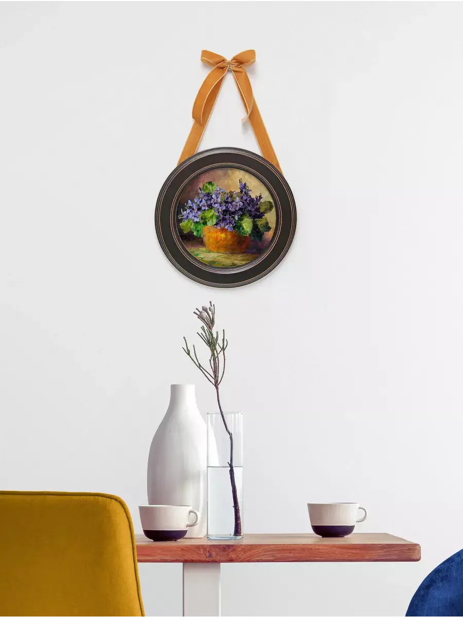 Настенный декор в нежных пастельных тонах с красивыми букетами в раме приятного шоколадно-коричневого цвета. Бархатная лента цвета яркой охры добавляет картине изысканности. Эта не большая картина станет стильным акцентом в вашем интерьере. Она идеально подойдет для оформления стен в различных помещениях: от кухни до спальни, от гостиной до прихожей. Настенное панно выполнено на холсте и отличается яркими цветами, изображающими цветы, что придаст уют и свежесть любому дому или квартире. Декоративное оформление в рамке добавит элегантности и завершенности, делая картину не только предметом декора, но и важной частью атмосферы пространства. Это решение отлично впишется в интерьер офиса, зала или любой комнаты, создавая ощущение счастья и гармонии. Пусть данное предметы искусства придаст вашему дому индивидуальность и изысканный стиль.
