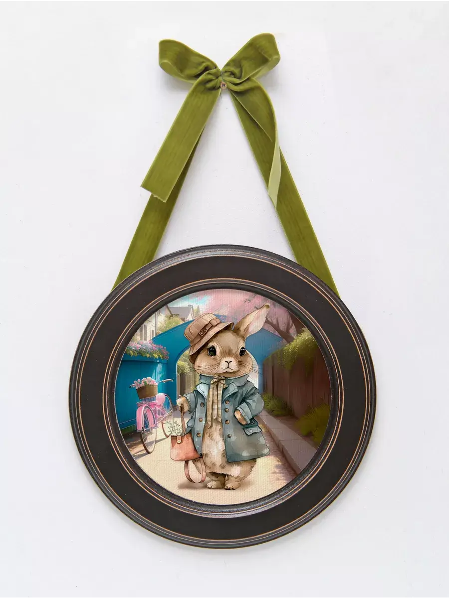 Настенный декор в нежных пастельных тонах с милыми зайчиками в раме приятного шоколадно-коричневого цвета. Бархатная лента благородного зеленого цвета добавляет картине изысканности. Картина напечатана на натуральном холсте, покрыта матовым лаком станет прекрасным дополнением и украшением интерьера.