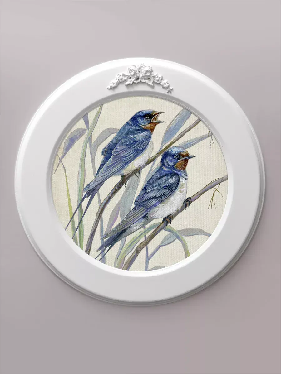 Настенный декор в нежных пастельных тонах с птичками в белой раме с лепниной. Эта не большая картина станет стильным акцентом в интерьере. Она идеально подойдет для оформления стен в различных помещениях: от кухни до спальни, от гостиной до прихожей. Настенное панно выполнено на холсте и отличается яркими цветами, изображающими природу и цветы, что придаст уют и свежесть любому дому или квартире. Декоративное оформление в рамке добавит элегантности и завершенности, делая картину не только предметом декора, но и важной частью атмосферы вашего пространства. Это решение отлично впишется в интерьер офиса, зала или любой комнаты, создавая ощущение счастья и гармонии. Пусть данное предметы искусства придаст вашему дому индивидуальность и изысканный стиль.