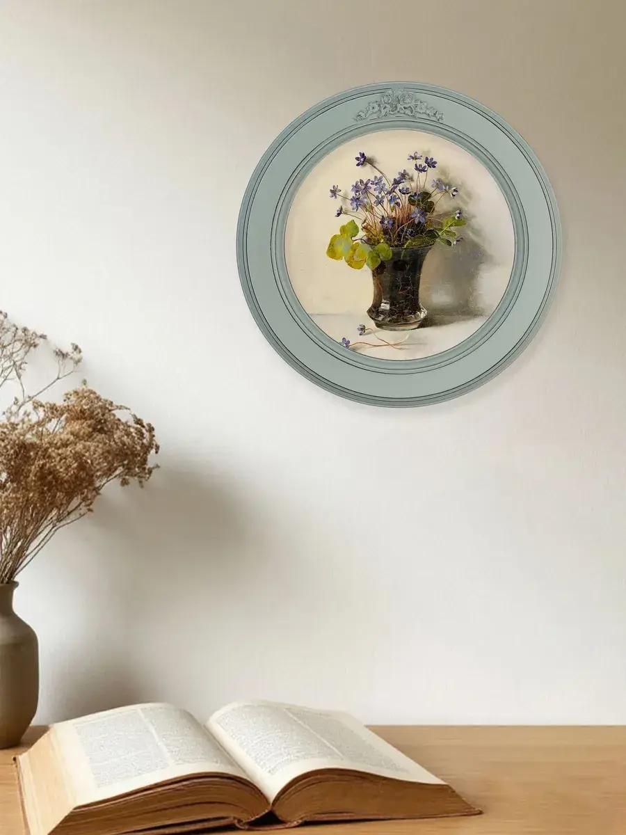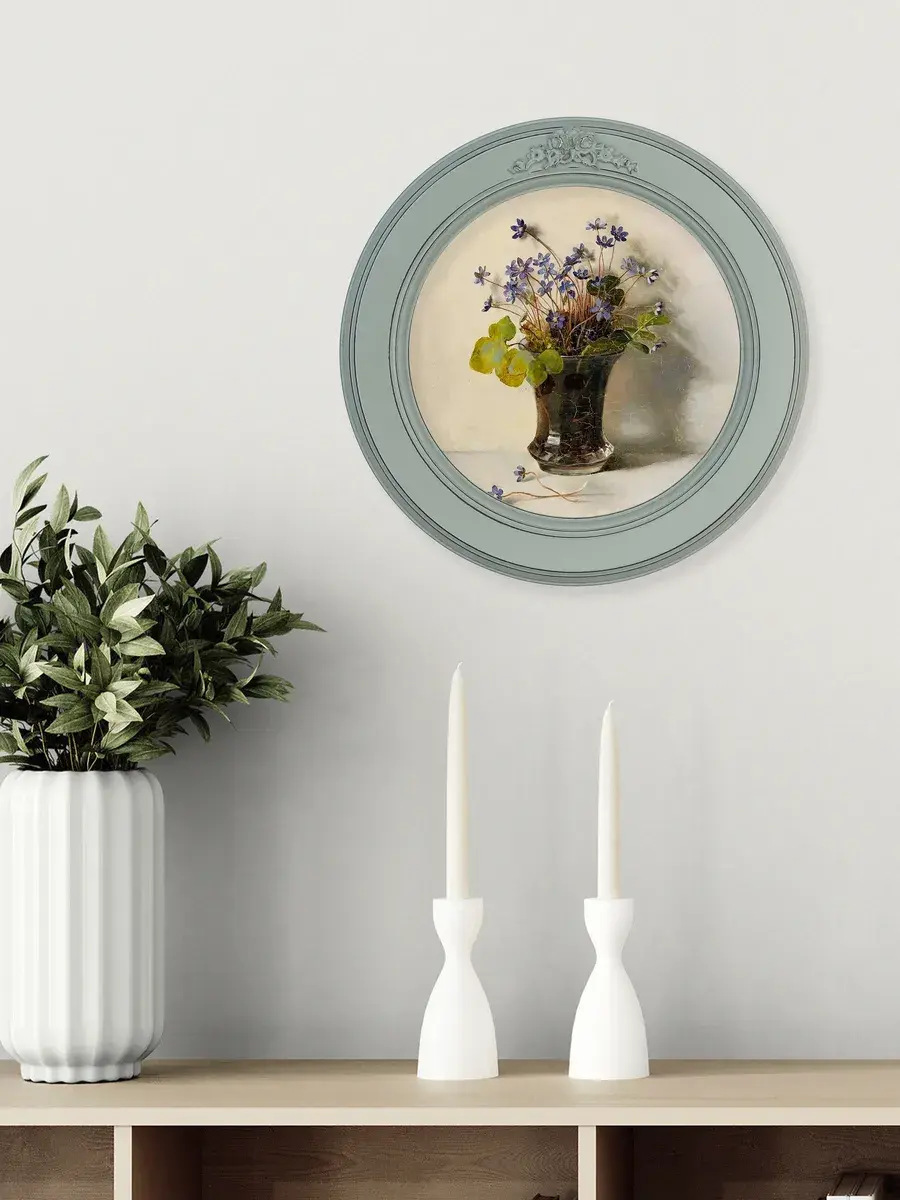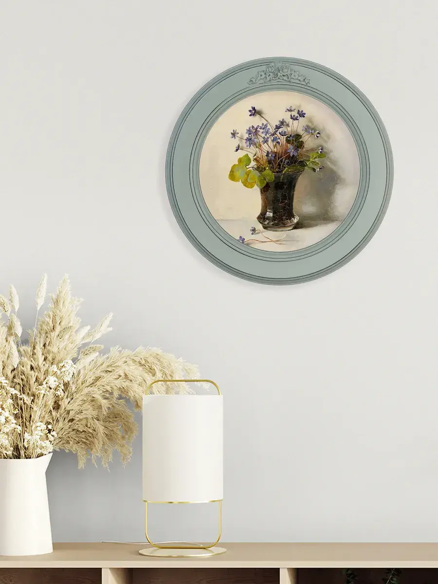 Настенный декор в нежных пастельный тонах в мятной раме с лепниной с эффектом состаривания. Картина в стиле Прованс напечатана на натуральном холсте, покрыта матовым лаком в круглой раме мятного цвета станет прекрасным украшением интерьера. Множество вариантов дает возможность создать собственную коллекцию. Настенные картины с изображением лаванды для украшения дома и дачи, добавят уюта на кухне, гостиной, прихожей и в детской комнате. Рама изготовлена из цельного листа МДФ 16 мм, не имеет зазоров и стыков. Окрашена экологичной акриловой эмалью в мятный цвет, состарена вручную. Диаметр картины 27 см, диаметр изображения 19 см. Крепление для стены в комплекте.