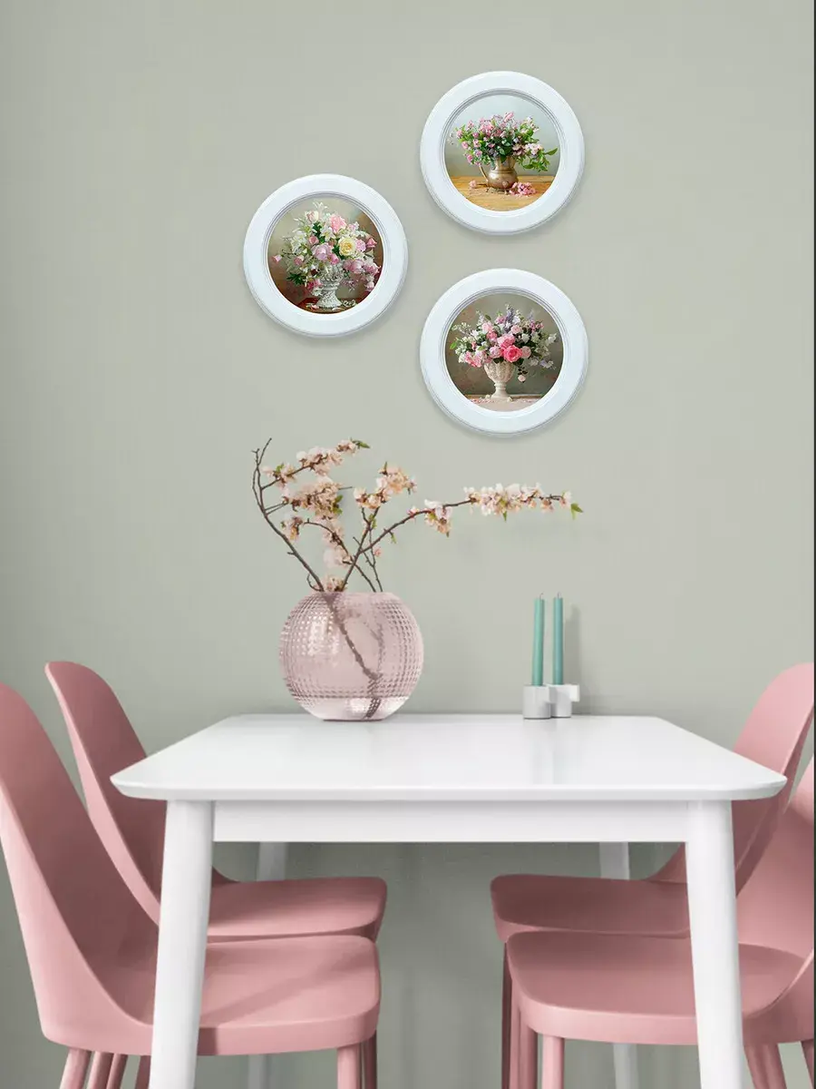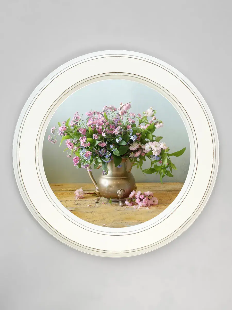 Картина напечатана на натуральном холсте, покрыта матовым лаком в круглой белой раме станет прекрасным украшением интерьера. Рама состарена вручную. Множество вариантов дает возможность создать собственную коллекцию. Композицию из нескольких картин можно дополнить зеркалом, оформить свои творческие работы или фотографии в раму. Картины с лавандой и разнообразными букетами прекрасный подарок. Настенные картины для украшения дома и дачи, добавят уюта на кухне и в детской комнате. Рама изготовлена из цельного листа МДФ 16 мм, не имеет зазоров и стыков. Окрашена экологичной акриловой эмалью в белый цвет. Диаметр картины 27 см, диаметр изображения 19 см. Крепление для стены в комплекте.