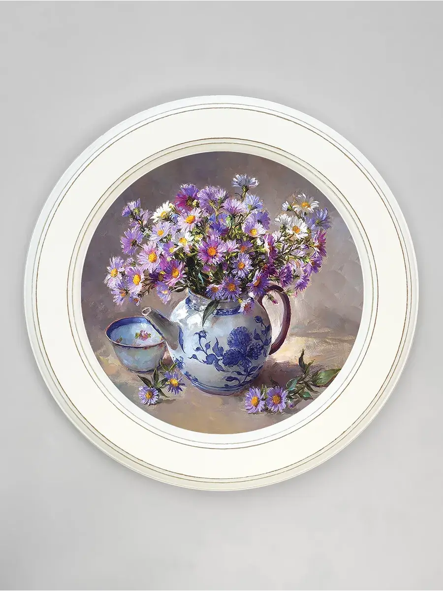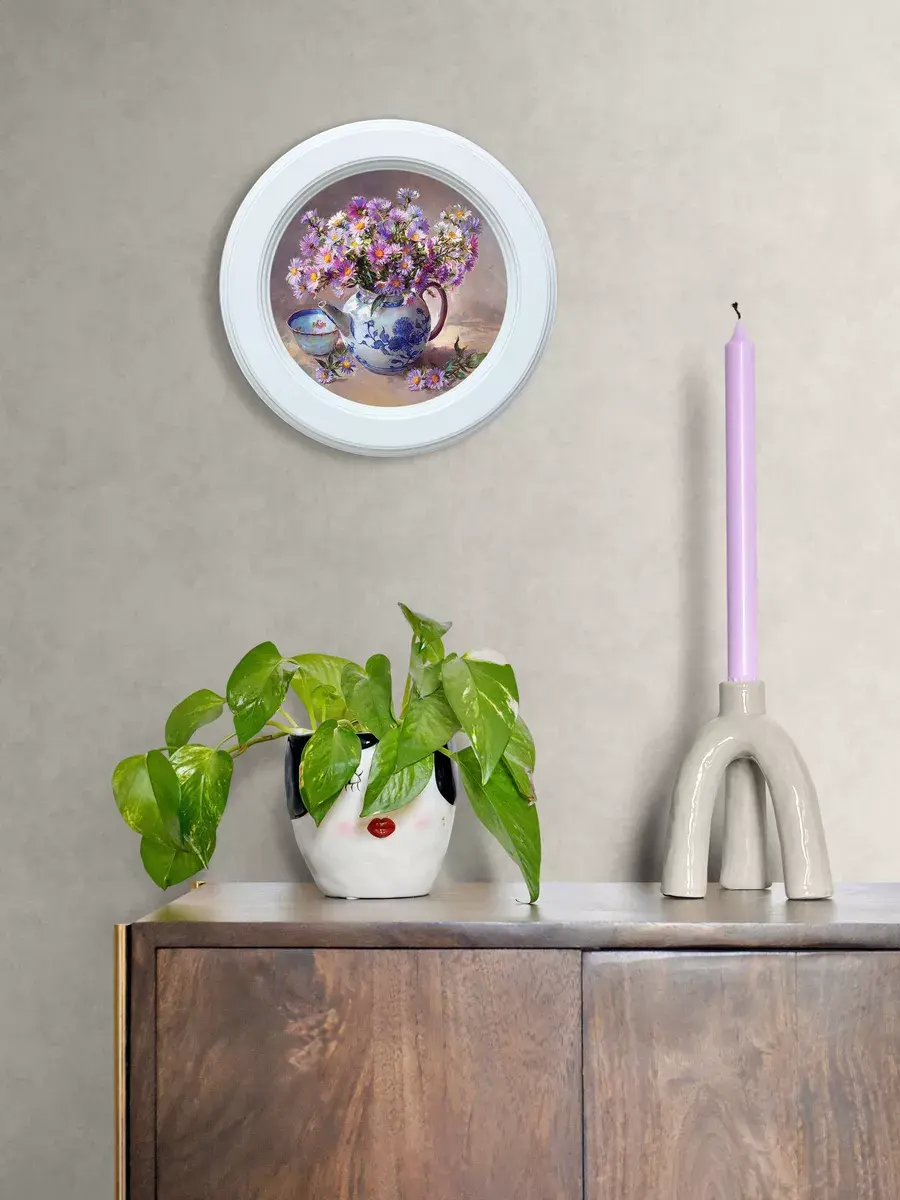 Картина напечатана на натуральном холсте, покрыта матовым лаком в круглой белой раме станет прекрасным украшением интерьера. Рама состарена вручную. Множество вариантов дает возможность создать собственную коллекцию. Композицию из нескольких картин можно дополнить зеркалом, оформить свои творческие работы или фотографии в раму. Картины с лавандой и разнообразными букетами прекрасный подарок. Настенные картины для украшения дома и дачи, добавят уюта на кухне и в детской комнате. Рама изготовлена из цельного листа МДФ 16 мм, не имеет зазоров и стыков. Окрашена экологичной акриловой эмалью в белый цвет. Диаметр картины 27 см, диаметр изображения 19 см. Крепление для стены в комплекте.