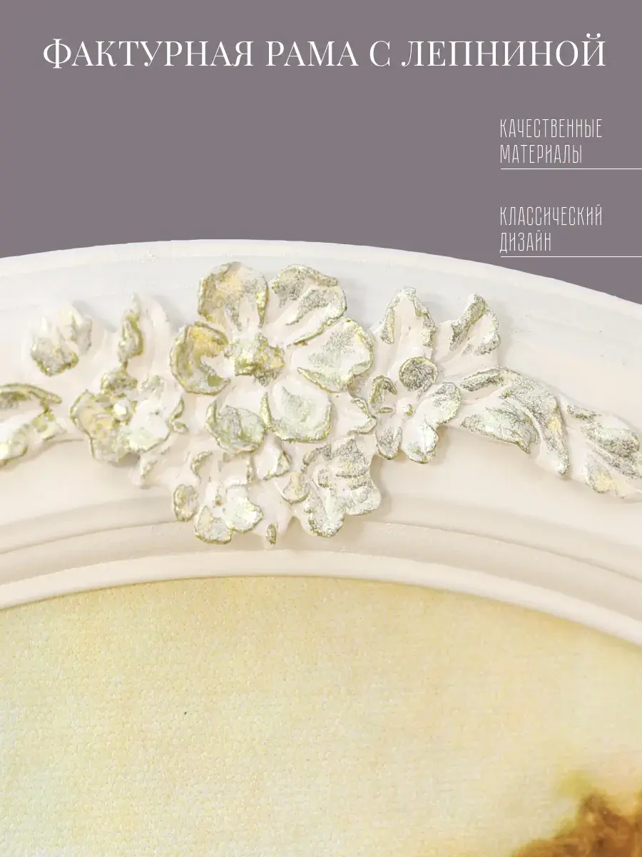 Картина в круглой раме диаметром 27 см станет изысканным дополнением к любому интерьеру, привнося в него нотку уюта и классического стиля. Изображение на натуральном холсте, выполненное в нежных молочных и светло-песочных тонах, создает атмосферу спокойствия и гармонии. Круглая рама придает картине элегантный и современный вид, делая ее подходящей для различных стилей оформления. Благодаря музейному качеству исполнения, эта картина станет настоящим произведением искусства, которое будет радовать вас долгие годы. Картина прекрасно впишется в интерьер спальни, детской комнаты или гостиной, создавая уютную и комфортную атмосферу. Благодаря наличию картин в коллекции разного диаметра, вы сможете подобрать идеальный вариант для любого пространства, создать свой неповторимый интерьер. Крепление для стены в комплекте.