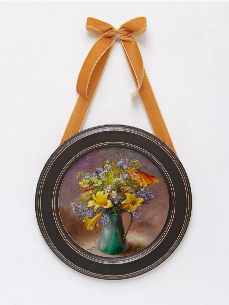 Настенный декор в нежных пастельных тонах с красивыми букетами в раме приятного шоколадно-коричневого цвета. Бархатная лента цвета яркой охры добавляет картине изысканности. Эта не большая картина станет стильным акцентом в вашем интерьере. Она идеально подойдет для оформления стен в различных помещениях: от кухни до спальни, от гостиной до прихожей. Настенное панно выполнено на холсте и отличается яркими цветами, изображающими цветы, что придаст уют и свежесть любому дому или квартире. Декоративное оформление в рамке добавит элегантности и завершенности, делая картину не только предметом декора, но и важной частью атмосферы пространства. Это решение отлично впишется в интерьер офиса, зала или любой комнаты, создавая ощущение счастья и гармонии. Пусть данное предметы искусства придаст вашему дому индивидуальность и изысканный стиль.