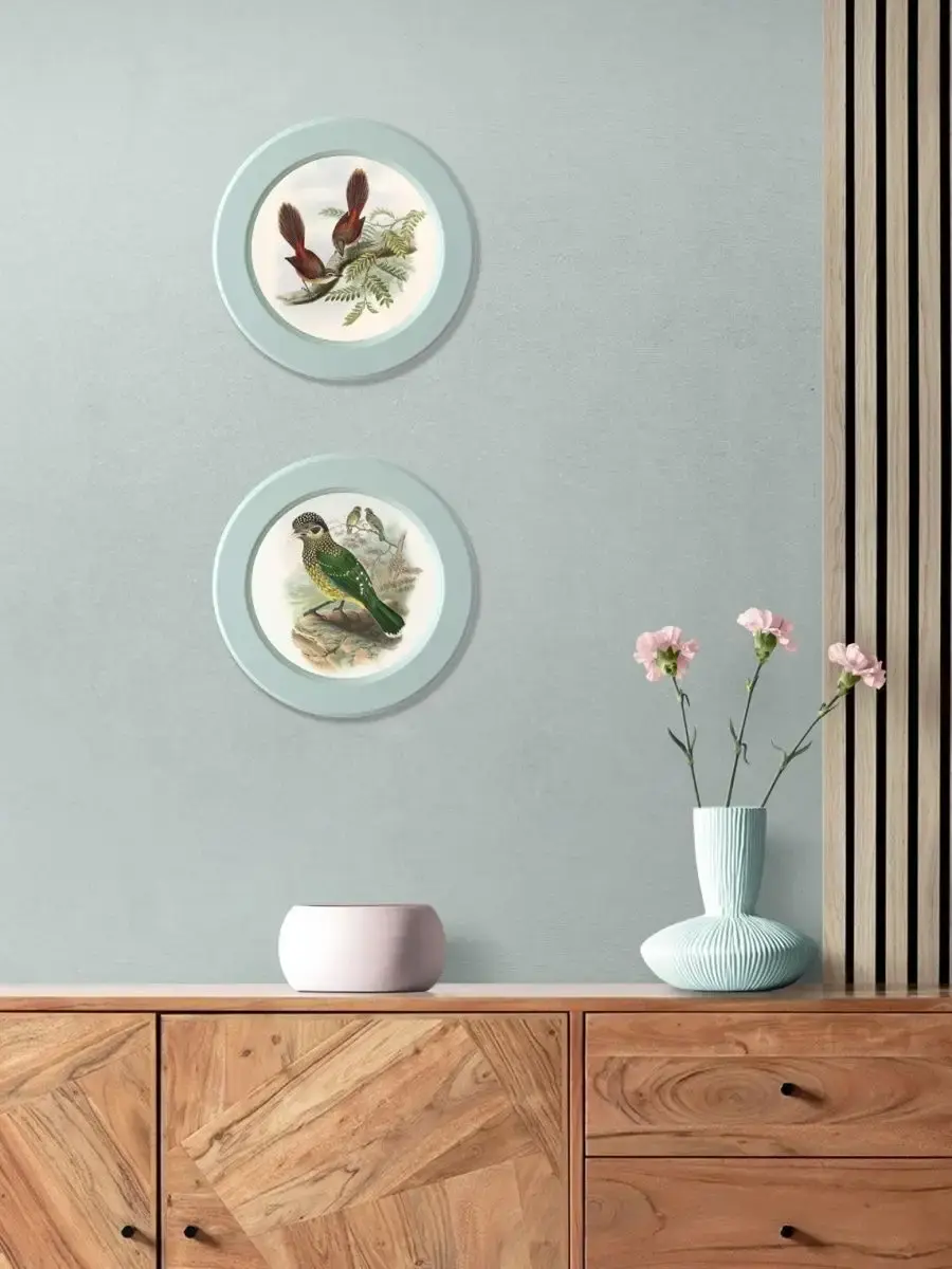Настенный декор в нежных пастельный тонах с изящными птичками в нежной бирюзовой раме. Настенная картина на холсте станет стильным дополнением интерьера вашей кухни или спальни. Эти современные картинки привносят в атмосферу уют и гармонию, отлично сочетаясь с любым декором. Маленькая картинка идеально впишется в прихожую или на стену рядом с кроватью, добавляя изюминку в обстановку. Интерьерные элементы, такие как эта картина, помогают создать завершенный и продуманный дизайн, который будет радовать глаз и поднимать настроение каждый день.Картина напечатана на натуральном холсте, покрыта матовым лаком в круглой белой раме станет прекрасным украшением интерьера. Множество вариантов дает возможность создать собственную коллекцию. Коллекцию можно дополнить зеркалом, оформить свои творческие работы или фотографии в раму. Рама изготовлена из цельного листа МДФ 16 мм, не имеет зазоров и стыков. Окрашена экологичной акриловой эмалью в бирюзовый цвет. Диаметр картины 27 см, диаметр изображения 19 см. Крепление для стены в комплекте.