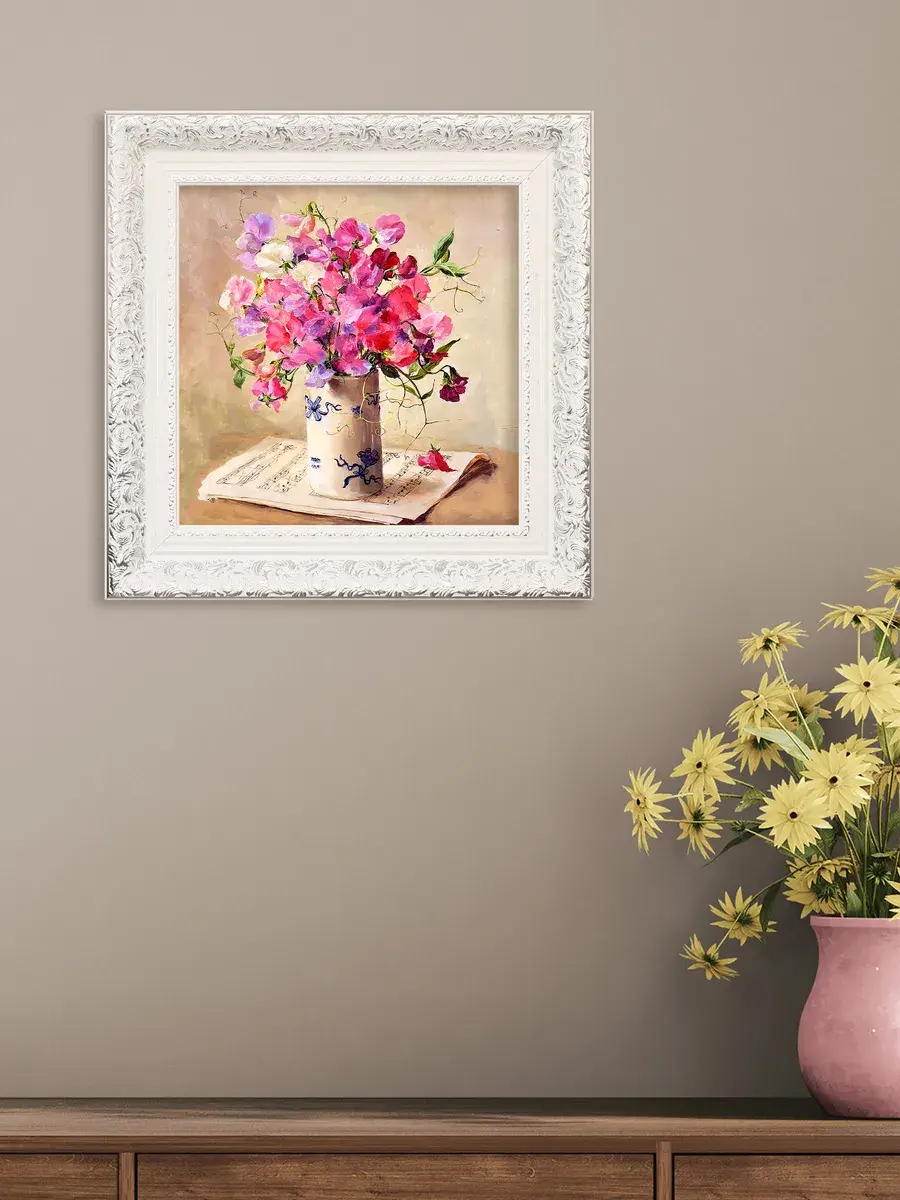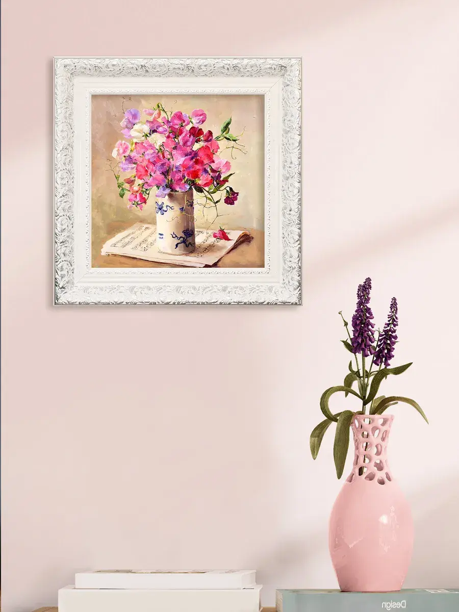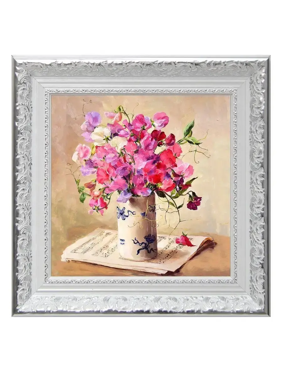 Для картин подходит полочка. Картина напечатана на натуральном холсте, покрыта лаком. Для защиты от провисания холст наклеен на хдф. Рама из полиуретана белоснежная с позолотой. Картины небольшого размера (холст 20*20 см) для создания коллекций. Размер картины с рамой 27х27 см. Коллекция картин идеально подходит к полкам в багетной раме.