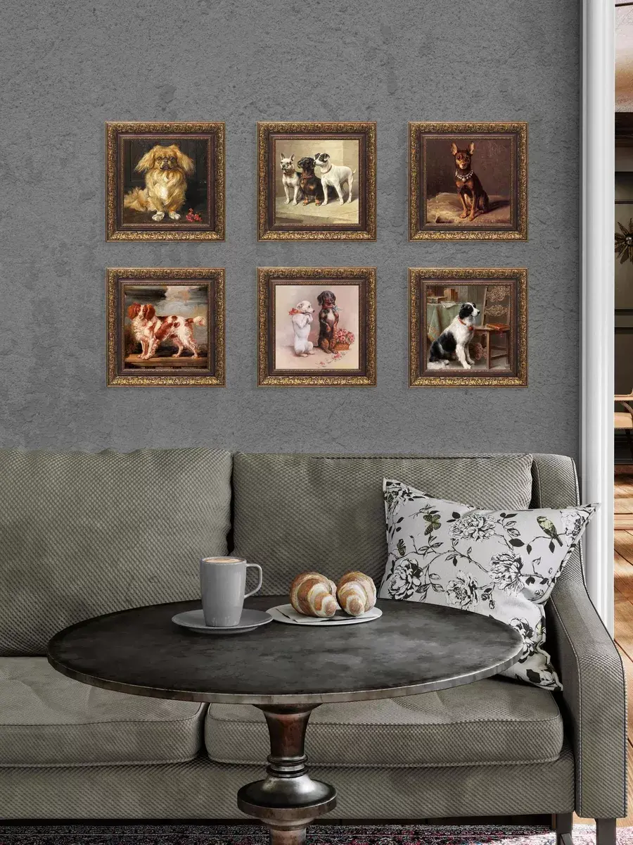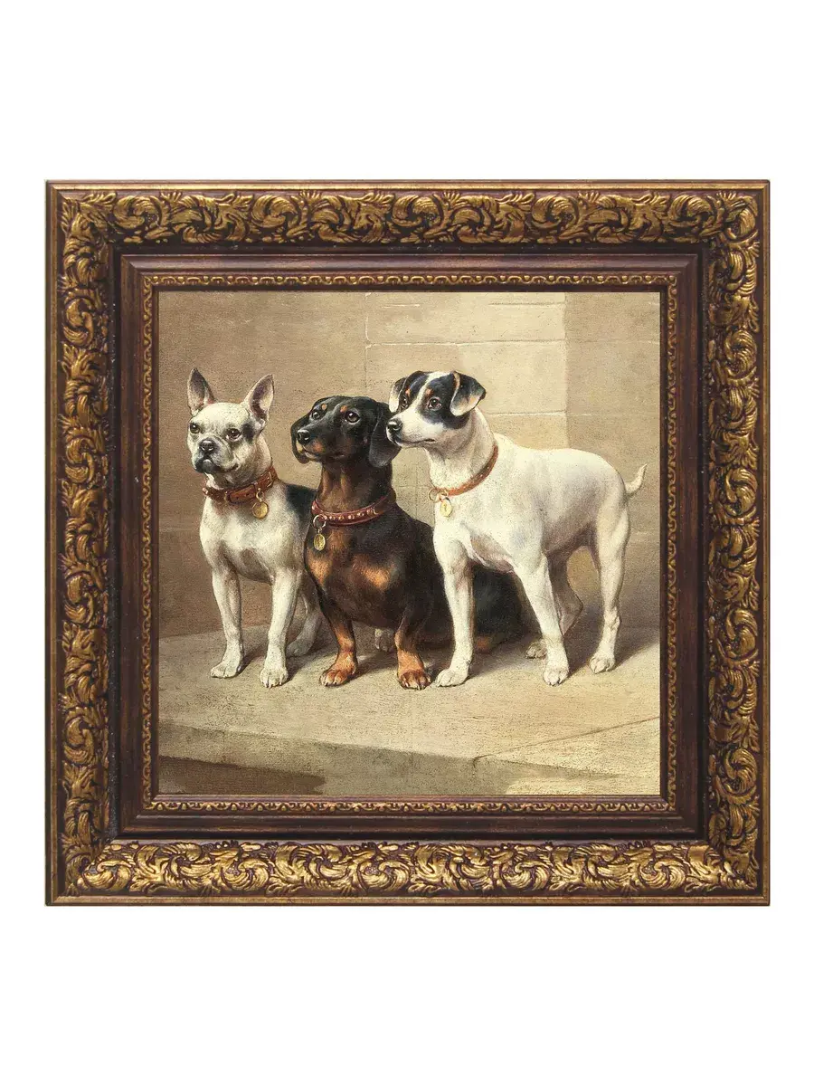 Картина художника Эдуарда Мане Кинг Чарльза с изображением собак для создания коллекций в классическом стиле. Украшение для стен дома, гостиной, прихожей, спальни, детской, оформления кабинетана, для создания уютной атмосферы на даче. Картины в золотой классической раме подойдет для оформления стен в кафе и ресторане. Картина напечатана на натуральном холсте, покрыта лаком. Для защиты от провисания холст наклеен на хдф. Рама широкая из полиуретана, матовая с эффектом старения. Размера холст 20*20 см. Ширина рамы 5,5 см. Картина - это отличный подарок. Крепление для стены в комплекте.