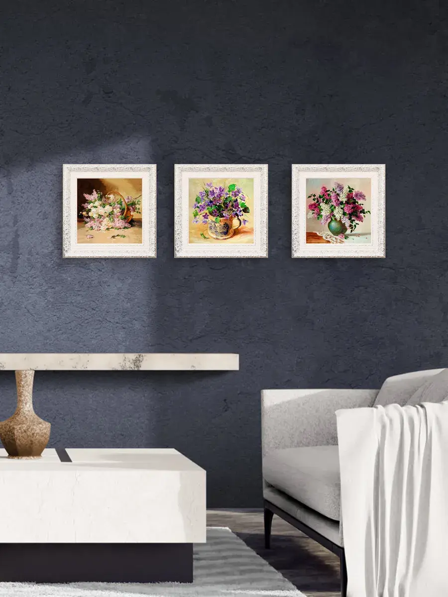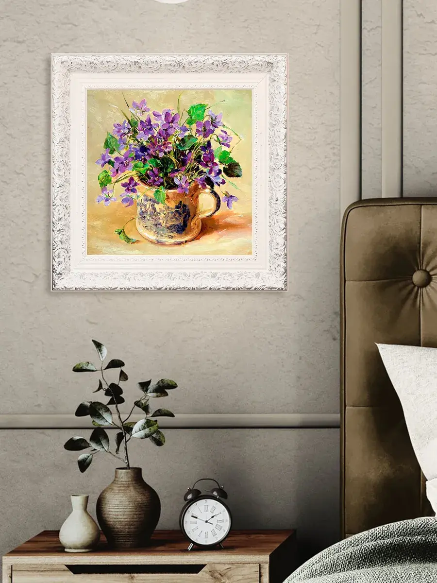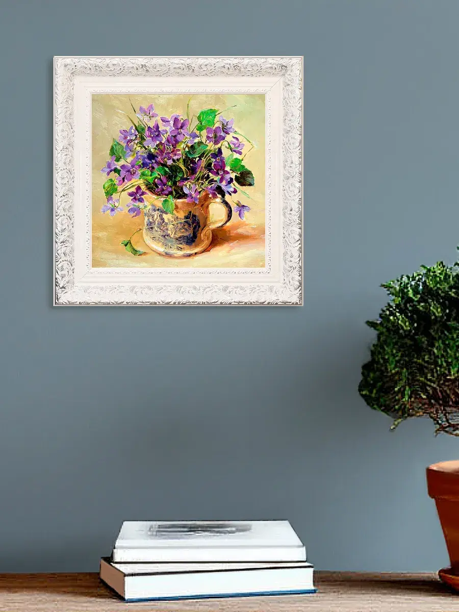 Для картин подходит полочка. Картина напечатана на натуральном холсте, покрыта лаком. Для защиты от провисания холст наклеен на хдф. Рама из полиуретана белоснежная с позолотой. Картины небольшого размера (холст 20*20 см) для создания коллекций. Размер картины с рамой 27х27 см. Коллекция картин идеально подходит к полкам в багетной раме.