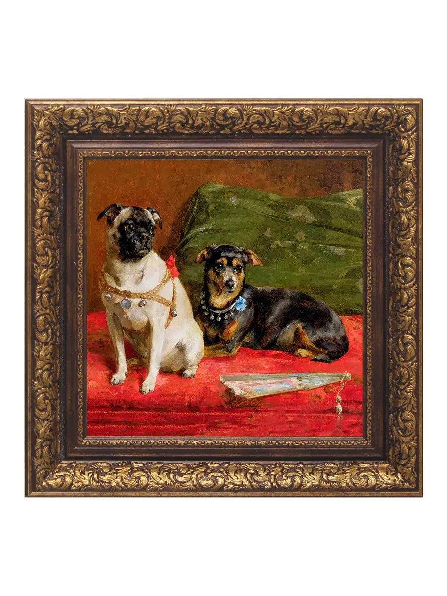Картина художника Эдуарда Мане Кинг Чарльза с изображением собак для создания коллекций в классическом стиле. Украшение для стен дома, гостиной, прихожей, спальни, детской, оформления кабинетана, для создания уютной атмосферы на даче. Картины в золотой классической раме подойдет для оформления стен в кафе и ресторане. Картина напечатана на натуральном холсте, покрыта лаком. Для защиты от провисания холст наклеен на хдф. Рама широкая из полиуретана, матовая с эффектом старения. Размера холст 20*20 см. Ширина рамы 5,5 см. Картина - это отличный подарок. Крепление для стены в комплекте.