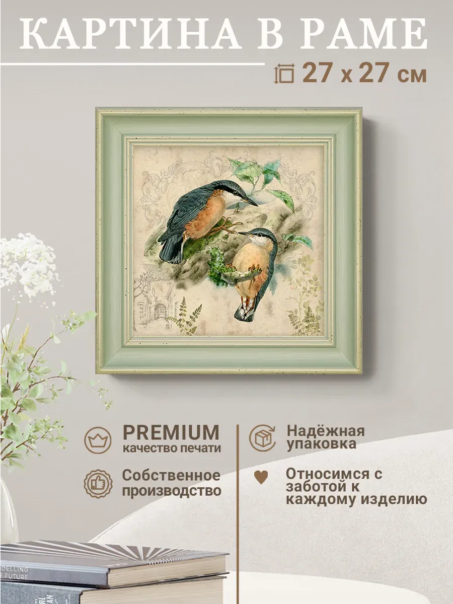Интерьерная картина на холсте Elenadecor — стильный элемент декора, который добавит уюта и гармонии в интерьер. Нежный сюжет с птицами в винтажном стиле создает атмосферу спокойствия, тепла и домашнего уюта.