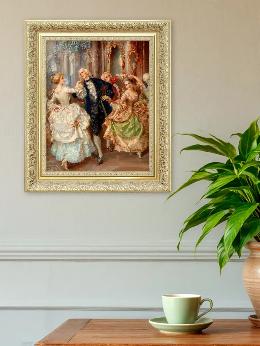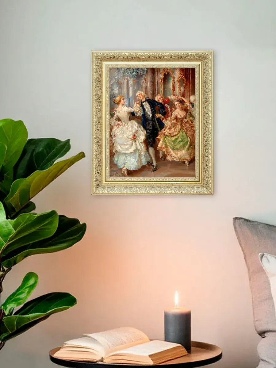 Эта интерьерная картина станет замечательным украшением для вашего дома, добавив в пространство нотки классики и элегантности. Она прекрасно подойдет для спальни, гостиной или прихожей, создавая атмосферу уюта и комфорта. Репродукция выполнена на высококачественном холсте, что позволяет передать все детали и оттенки оригинала. Размер удобен для размещения в различных помещениях, а стильная рама дополнит любой интерьер. Разместите её на стену, чтобы привнести в квартиру или дачу элементы художественного вдохновения и сделать ваше пространство более живым. Наполните дом красивыми произведениями искусства, которые будут радовать глаз и вдохновлять на творчество. Картина станет не только украшением, но и источником положительных эмоций для всей семьи.