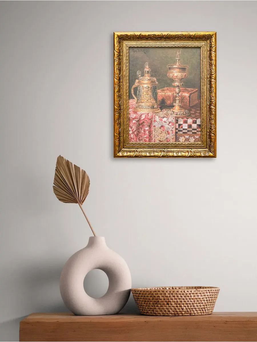 Картина на натуральном холсте "Натюрморт с восточной посудой" австрийского художника Max Schödl от Elenadecor станет изысканным украшением вашего интерьера, привнося в него атмосферу уюта и элегантности. Эта интерьерная репродукция, выполненная на натуральном холсте, представлена в классической раме с позолотой, что придает ей особый шарм и подчеркивает красоту натюрморта. Картина, размером 25*31 см, прекрасно впишется в любую коллекцию и станет прекрасным дополнением к вашему интерьеру, будь то дом или офис. Благодаря удобному креплению, ее легко повесить на стену, создав неповторимую атмосферу. Настенная картина на холсте станет стильным дополнением интерьера вашей кухни или спальни. Эти современные картинки привносят в атмосферу уют и гармонию, отлично сочетаясь с любым декором. Не большая картина идеально впишется в прихожую или на стену рядом с кроватью, добавляя изюминку в обстановку. Интерьерные элементы, помогают создать завершенный и продуманный дизайн, который будет радовать глаз и поднимать настроение каждый день.