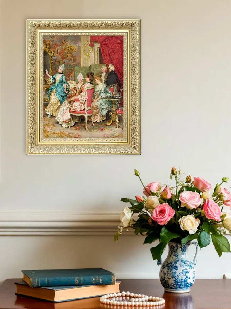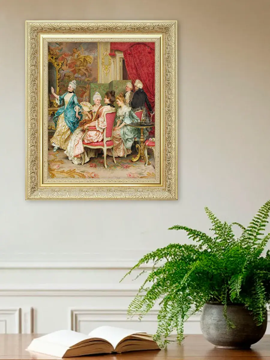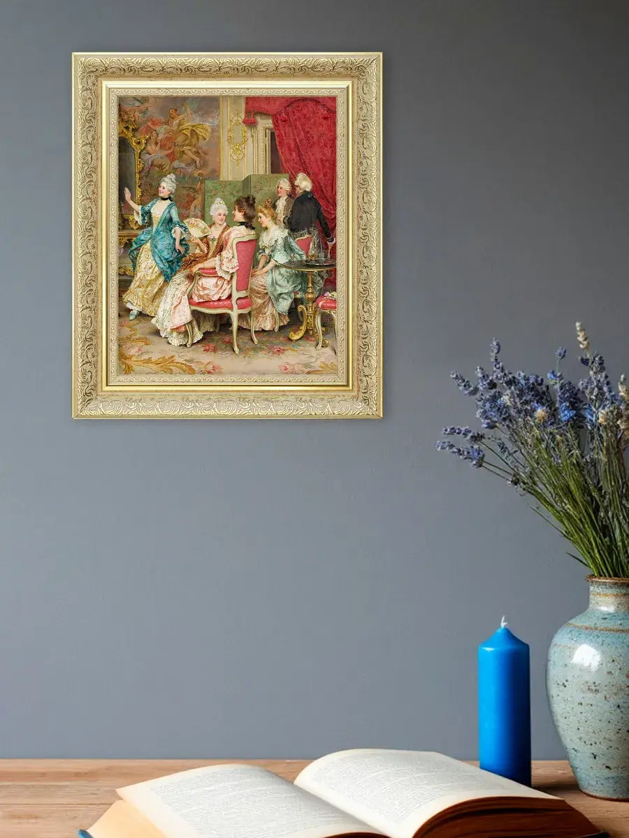 Эта интерьерная картина станет замечательным украшением для вашего дома, добавив в пространство нотки классики и элегантности. Она прекрасно подойдет для спальни, гостиной или прихожей, создавая атмосферу уюта и комфорта. Репродукция выполнена на высококачественном холсте, что позволяет передать все детали и оттенки оригинала. Размер удобен для размещения в различных помещениях, а стильная рама дополнит любой интерьер. Разместите её на стену, чтобы привнести в квартиру или дачу элементы художественного вдохновения и сделать ваше пространство более живым. Наполните дом красивыми произведениями искусства, которые будут радовать глаз и вдохновлять на творчество. Картина станет не только украшением, но и источником положительных эмоций для всей семьи.