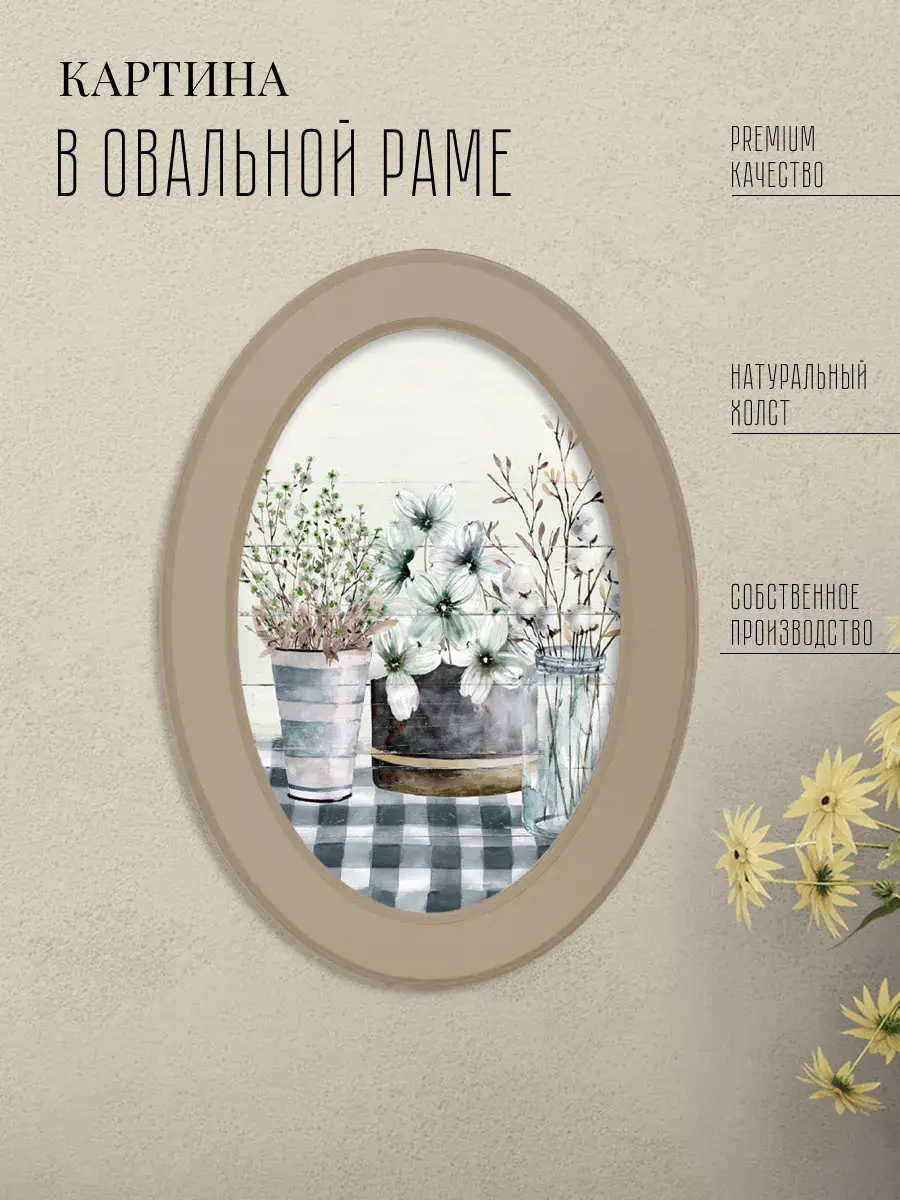 Картина на стену "Прованс" в овальной раме станет изысканным украшением вашего интерьера, наполняя его атмосферой умиротворения и спокойствия. Изображение нежных цветов и растений на натуральном холсте, выполненное в цветовой палитре капучино, создает ощущение уюта и тепла. Картина в цельной раме из МДФ, что придает ей завершенный и стильный вид. Она станет прекрасным дополнением к любому интерьеру, будь то детская, спальня, прихожая или гостиная. Благодаря своему универсальному дизайну, картина "Прованс" гармонично впишется в любой стиль оформления, привнося в него нотки нежности и элегантности. Размер картины в раме 27*37 см.