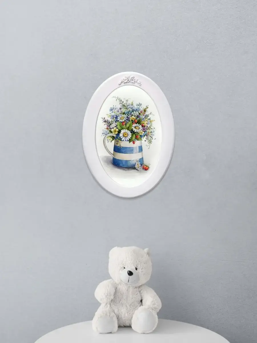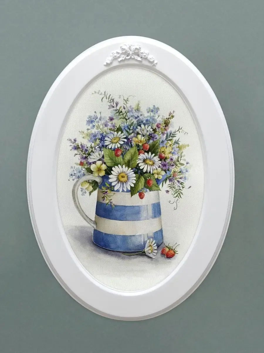 Настенный декор в нежных пастельных тонах. Коллекция репродукций картин чудесной российской художницы Елены Вавилиной. Картина напечатана на натуральном холсте, покрыта матовым лаком оформлена в овальную белую раму с лепниной. Картина станет прекрасным украшением интерьера. Множество вариантов для украшения стен дает возможность создать собственную коллекцию. Картины для украшения кухни в стиле Прованс, гостиной, прихожей, кабинета или для детской комнаты. Рама изготовлена из цельного листа МДФ 10 мм, не имеет зазоров и стыков. Окрашена экологичной акриловой эмалью в белый цвет. Размер картины 27х37 см, размер изображения 20х30 см. Крепление для стены в комплекте.
