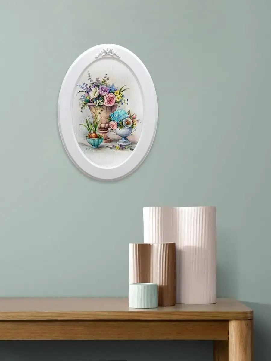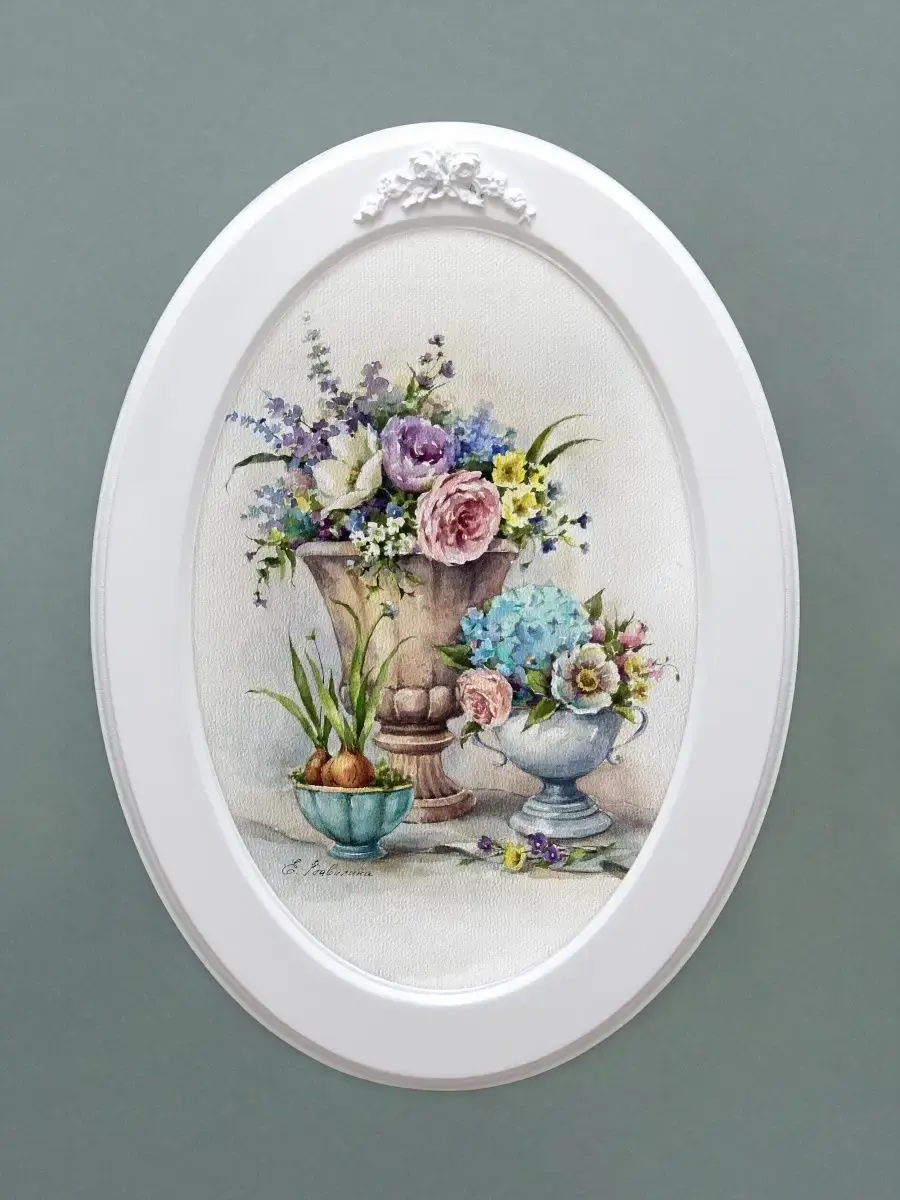 Настенный декор в нежных пастельных тонах. Коллекция репродукций картин чудесной российской художницы Елены Вавилиной. Картина напечатана на натуральном холсте, покрыта матовым лаком оформлена в овальную белую раму с лепниной. Картина станет прекрасным украшением интерьера. Множество вариантов для украшения стен дает возможность создать собственную коллекцию. Картины для украшения кухни в стиле Прованс, гостиной, прихожей, кабинета или для детской комнаты. Рама изготовлена из цельного листа МДФ 10 мм, не имеет зазоров и стыков. Окрашена экологичной акриловой эмалью в белый цвет. Размер картины 27х37 см, размер изображения 20х30 см. Крепление для стены в комплекте.