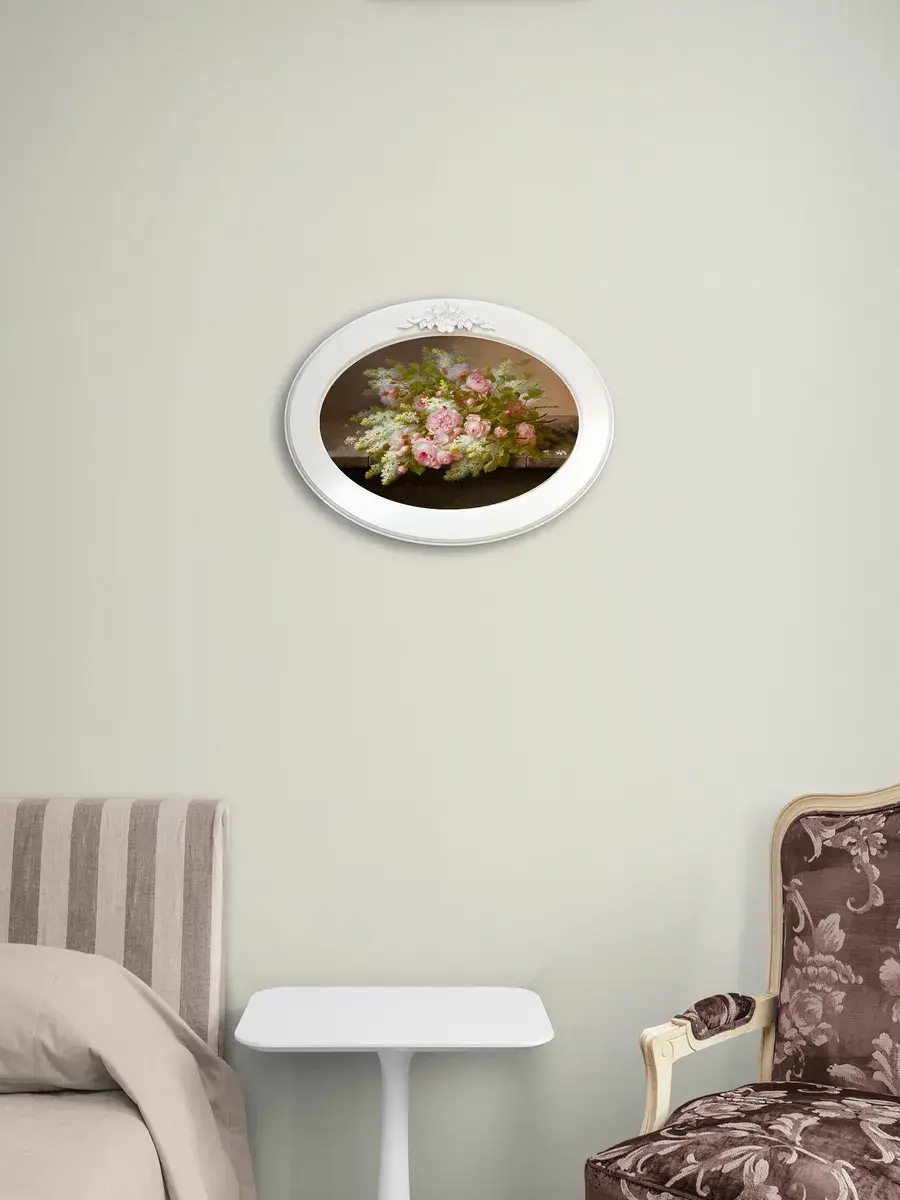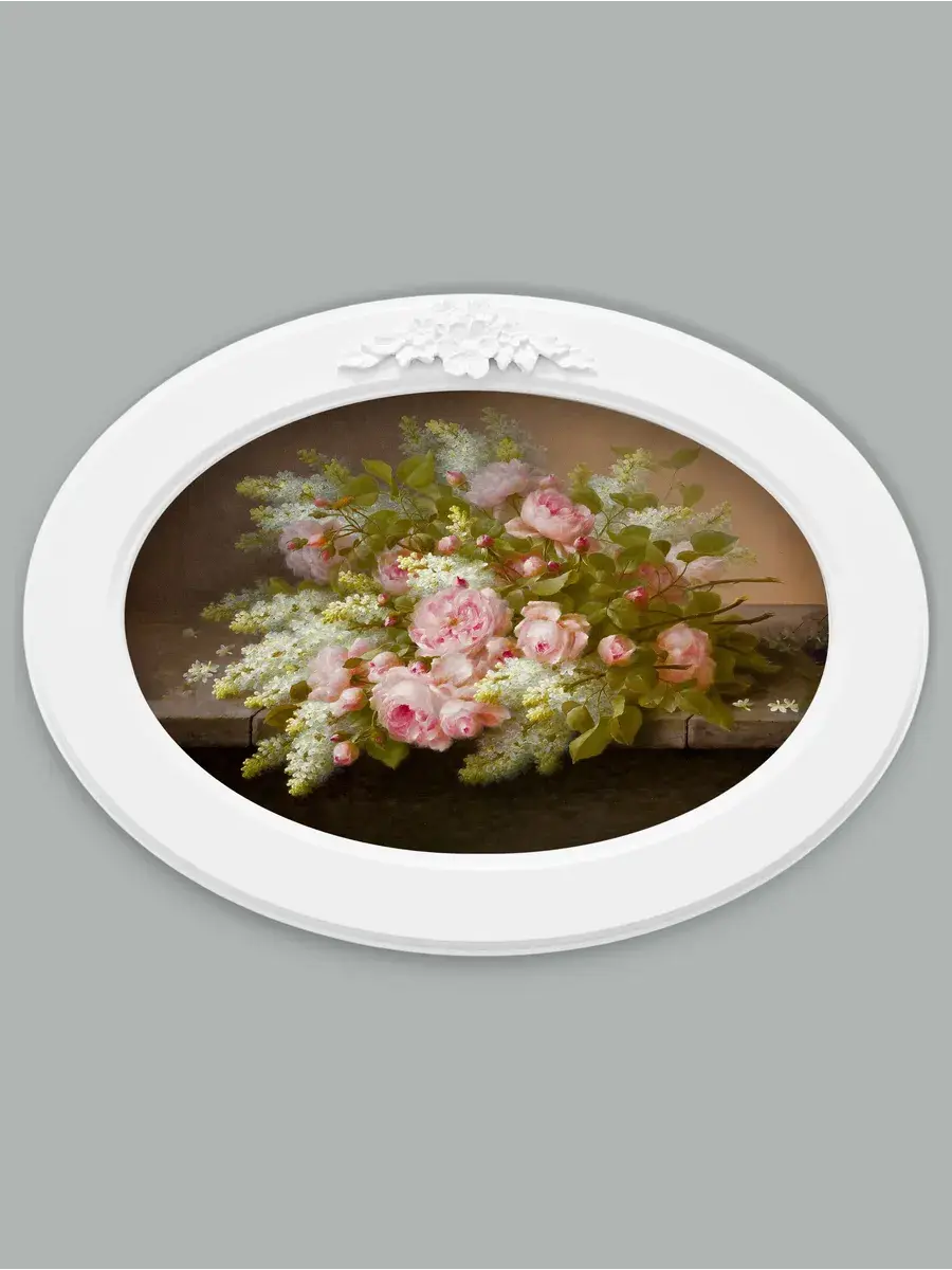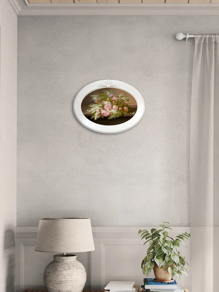 Натуральный холст с изображением красивых цветов и растений в сочетании с белоснежной рамой из МДФ и декоративной лепниной создают удивительный эффект, наполняя пространство уютом и элегантностью. Эта репродукция, выполненная в стиле прованс, станет прекрасным дополнением к любому дому, привнося в него нотку романтики и свежести. Картина в овальной раме 27*37 см станет прекрасным подарком.