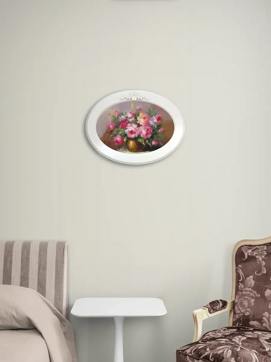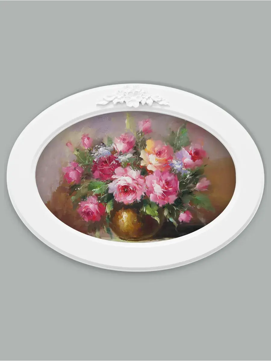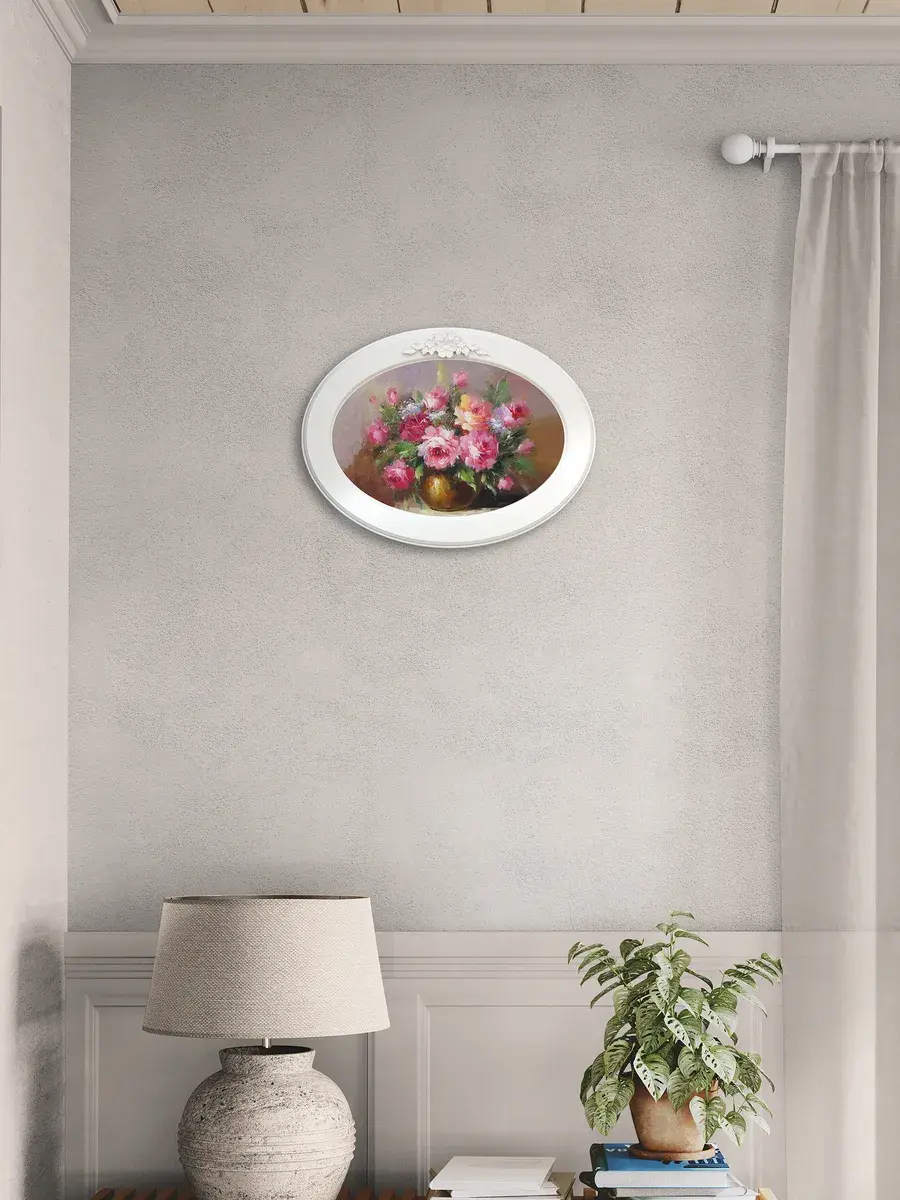 Натуральный холст с изображением красивых цветов и растений в сочетании с белоснежной рамой из МДФ и декоративной лепниной создают удивительный эффект, наполняя пространство уютом и элегантностью. Эта репродукция, выполненная в стиле прованс, станет прекрасным дополнением к любому дому, привнося в него нотку романтики и свежести. Картина в овальной раме 27*37 см станет прекрасным подарком.