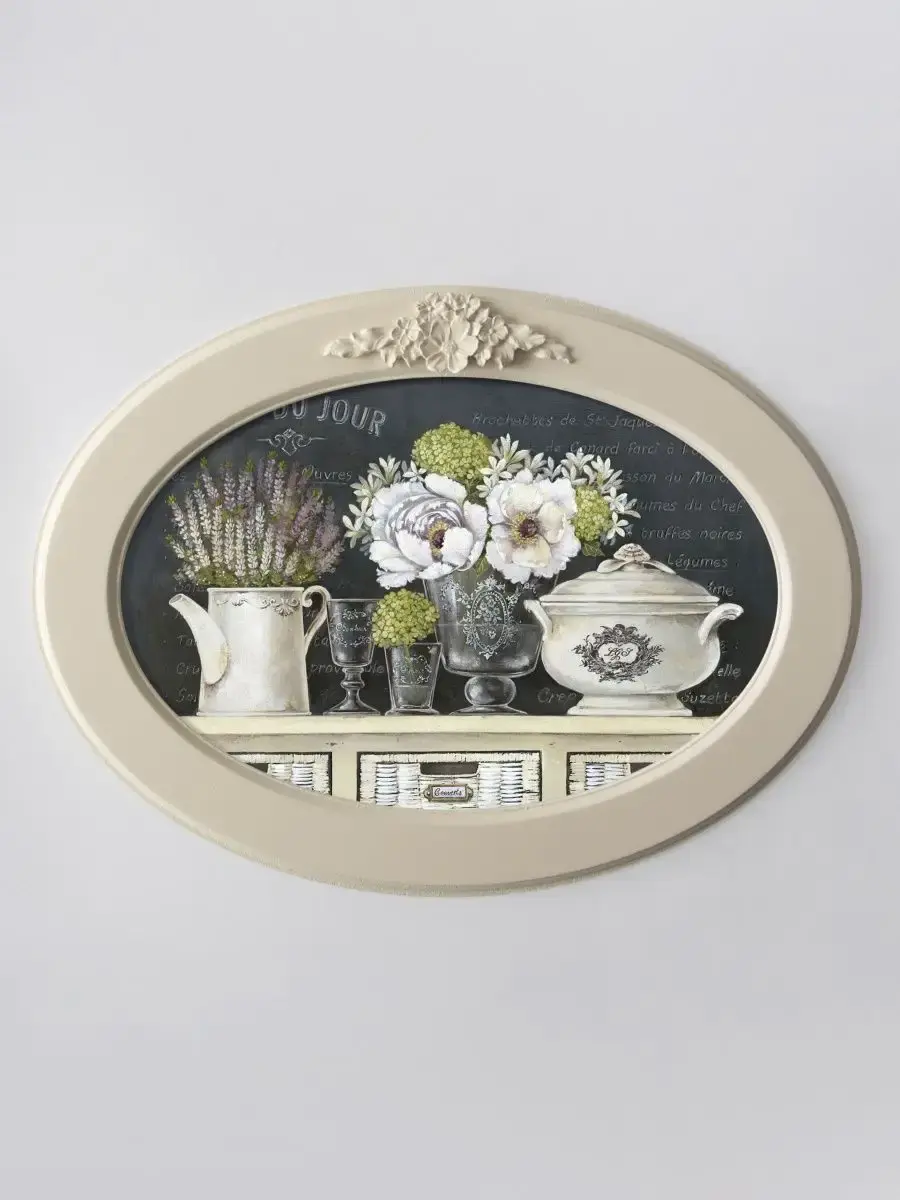 Настенный декор в нежных пастельных тонах. Картина напечатана на натуральном холсте, покрыта матовым лаком в овальной молочной раме с лепниной. Эта картина станет стильным акцентом в вашем интерьере. Она идеально подойдет для оформления стен в различных помещениях: от кухни до спальни, от гостиной до прихожей. Настенное панно выполнено на холсте и отличается яркими цветами, изображающими природу и цветы, что придаст уют и свежесть любому дому или квартире. Декоративное оформление в рамке добавит элегантности и завершенности, делая картину не только предметом декора, но и важной частью атмосферы пространства. Это решение отлично впишется в интерьер офиса, зала или любой комнаты, создавая ощущение счастья и гармонии. Пусть данное предметы искусства придаст вашему дому индивидуальность и изысканный стиль.