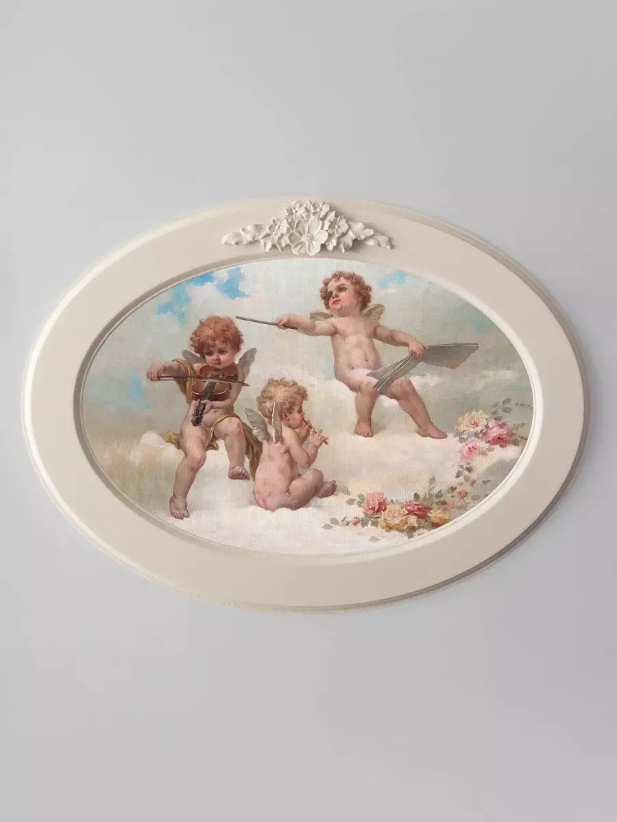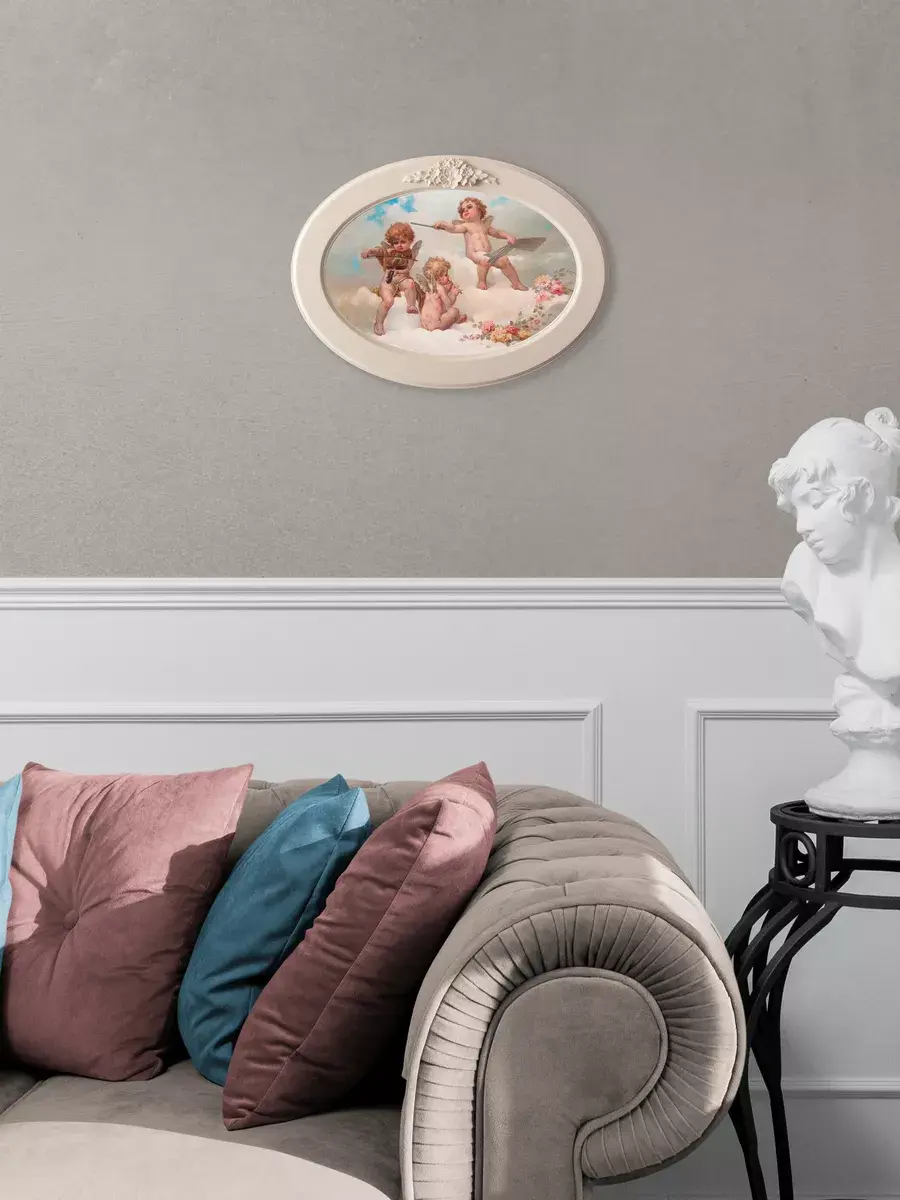 Настенный декор в нежных пастельных тонах. Картина напечатана на натуральном холсте, покрыта матовым лаком в овальной молочной раме с лепниной. Эта картина станет стильным акцентом в вашем интерьере. Она идеально подойдет для оформления стен в различных помещениях: от кухни до спальни, от гостиной до прихожей. Настенное панно выполнено на холсте и отличается яркими цветами, изображающими природу и цветы, что придаст уют и свежесть любому дому или квартире. Декоративное оформление в рамке добавит элегантности и завершенности, делая картину не только предметом декора, но и важной частью атмосферы пространства. Это решение отлично впишется в интерьер офиса, зала или любой комнаты, создавая ощущение счастья и гармонии. Пусть данное предметы искусства придаст вашему дому индивидуальность и изысканный стиль.