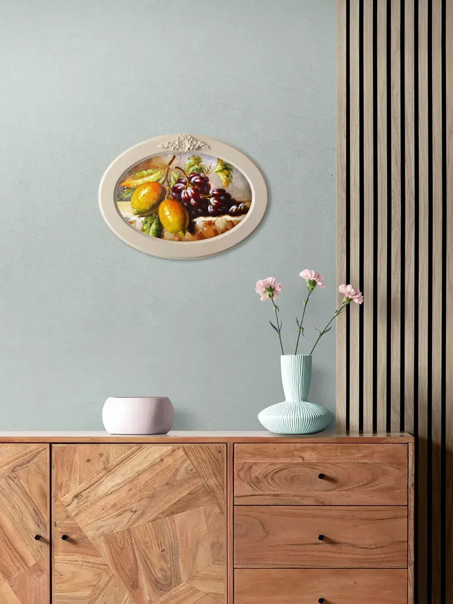 Настенный декор в нежных пастельных тонах. Картина напечатана на натуральном холсте, покрыта матовым лаком в овальной молочной раме с лепниной. Эта картина станет стильным акцентом в вашем интерьере. Она идеально подойдет для оформления стен в различных помещениях: от кухни до спальни, от гостиной до прихожей. Настенное панно выполнено на холсте и отличается яркими цветами, изображающими природу и цветы, что придаст уют и свежесть любому дому или квартире. Декоративное оформление в рамке добавит элегантности и завершенности, делая картину не только предметом декора, но и важной частью атмосферы пространства. Это решение отлично впишется в интерьер офиса, зала или любой комнаты, создавая ощущение счастья и гармонии. Пусть данное предметы искусства придаст вашему дому индивидуальность и изысканный стиль.