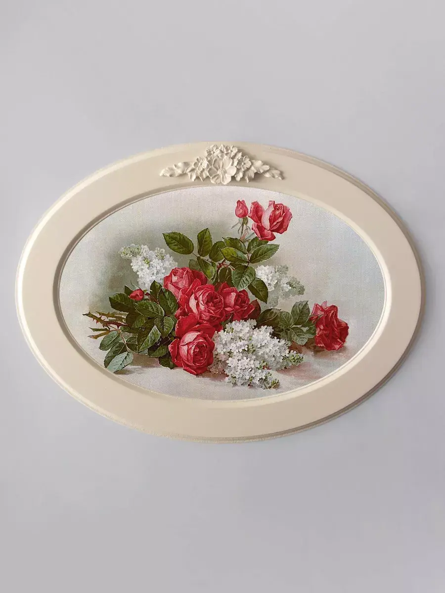 Настенный декор в нежных пастельных тонах. Картина напечатана на натуральном холсте, покрыта матовым лаком в овальной молочной раме с лепниной. Эта картина станет стильным акцентом в вашем интерьере. Она идеально подойдет для оформления стен в различных помещениях: от кухни до спальни, от гостиной до прихожей. Настенное панно выполнено на холсте и отличается яркими цветами, изображающими природу и цветы, что придаст уют и свежесть любому дому или квартире. Декоративное оформление в рамке добавит элегантности и завершенности, делая картину не только предметом декора, но и важной частью атмосферы пространства. Это решение отлично впишется в интерьер офиса, зала или любой комнаты, создавая ощущение счастья и гармонии. Пусть данное предметы искусства придаст вашему дому индивидуальность и изысканный стиль.