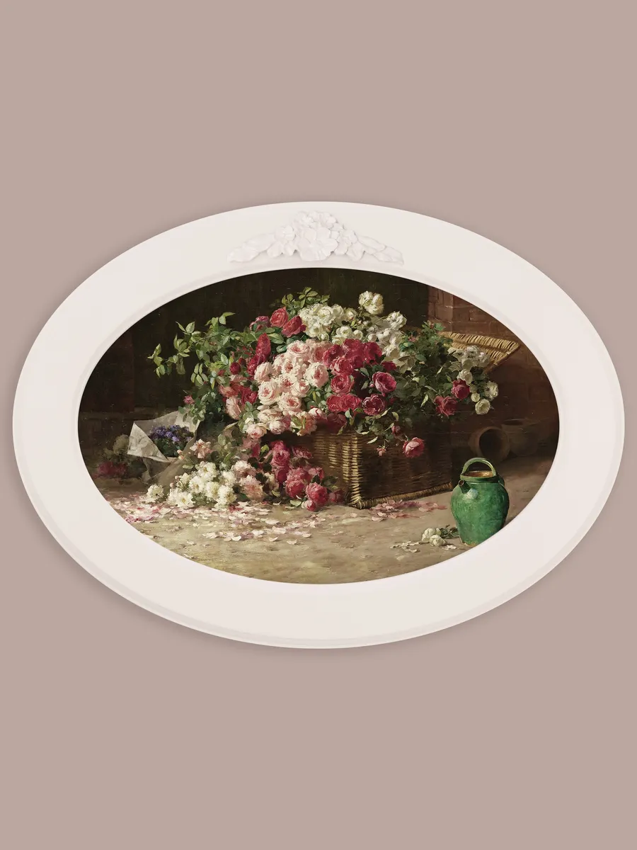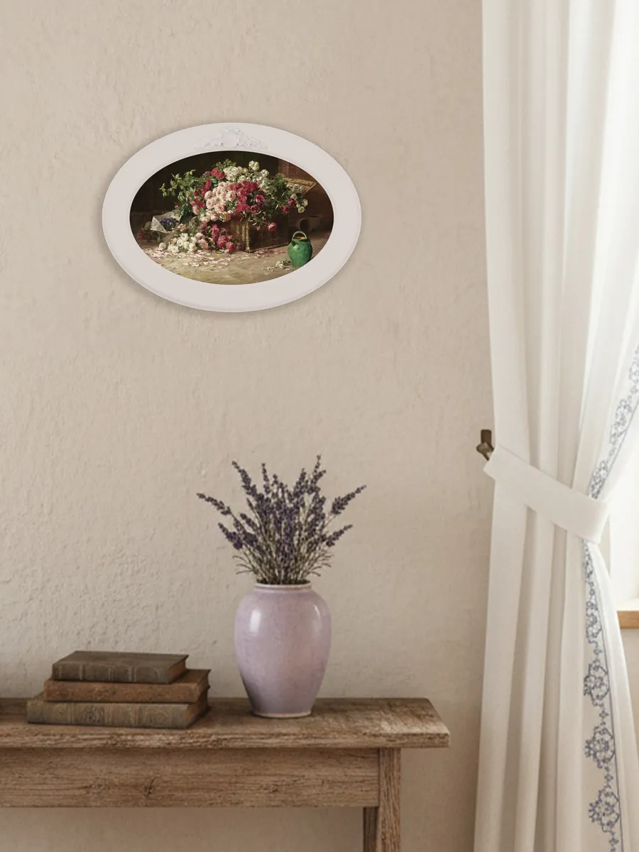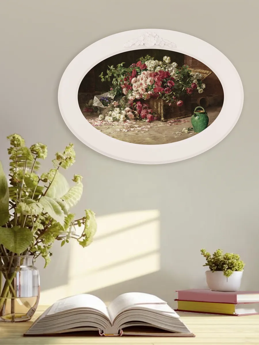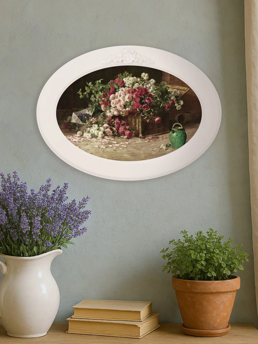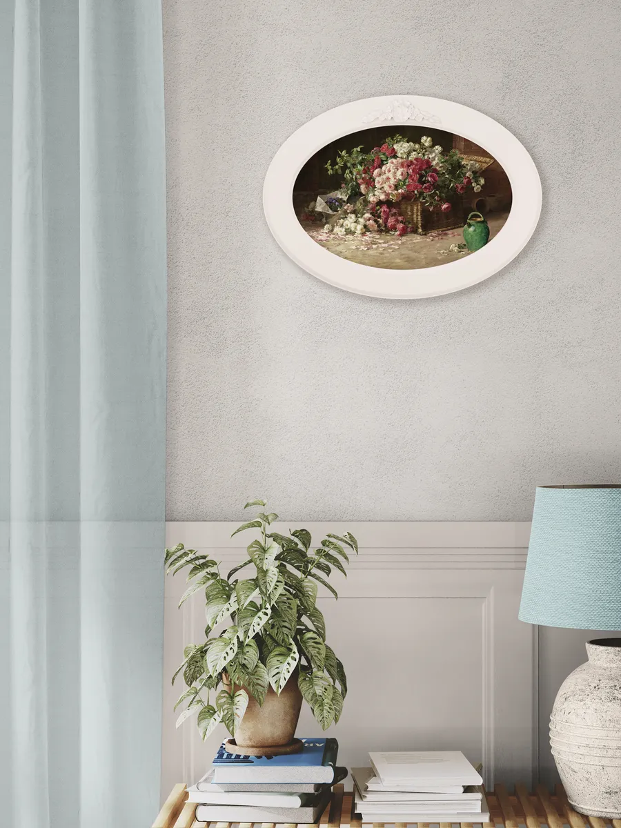 Настенный декор в нежных пастельных тонах. Картина напечатана на натуральном холсте, покрыта матовым лаком в овальной молочной раме с лепниной. Эта картина станет стильным акцентом в вашем интерьере. Она идеально подойдет для оформления стен в различных помещениях: от кухни до спальни, от гостиной до прихожей. Настенное панно выполнено на холсте и отличается яркими цветами, изображающими природу и цветы, что придаст уют и свежесть любому дому или квартире. Декоративное оформление в рамке добавит элегантности и завершенности, делая картину не только предметом декора, но и важной частью атмосферы пространства. Это решение отлично впишется в интерьер офиса, зала или любой комнаты, создавая ощущение счастья и гармонии. Пусть данное предметы искусства придаст вашему дому индивидуальность и изысканный стиль.