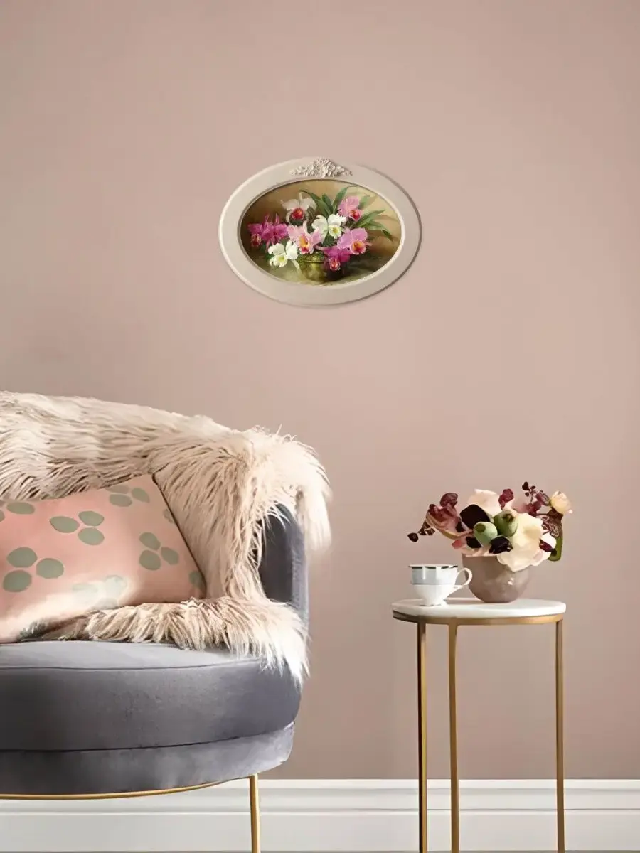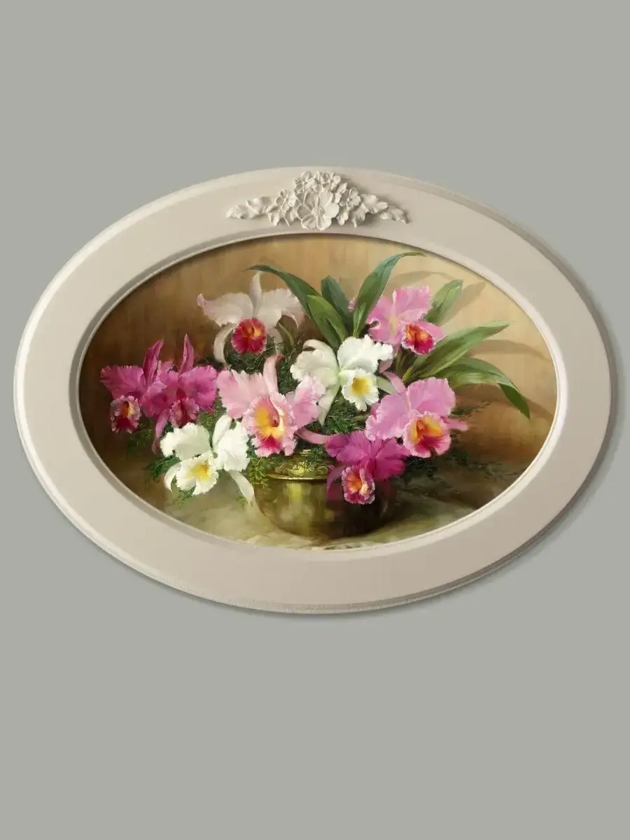 Настенный декор в нежных пастельных тонах. Картина напечатана на натуральном холсте, покрыта матовым лаком в овальной молочной раме с лепниной. Эта картина станет стильным акцентом в вашем интерьере. Она идеально подойдет для оформления стен в различных помещениях: от кухни до спальни, от гостиной до прихожей. Настенное панно выполнено на холсте и отличается яркими цветами, изображающими природу и цветы, что придаст уют и свежесть любому дому или квартире. Декоративное оформление в рамке добавит элегантности и завершенности, делая картину не только предметом декора, но и важной частью атмосферы пространства. Это решение отлично впишется в интерьер офиса, зала или любой комнаты, создавая ощущение счастья и гармонии. Пусть данное предметы искусства придаст вашему дому индивидуальность и изысканный стиль.