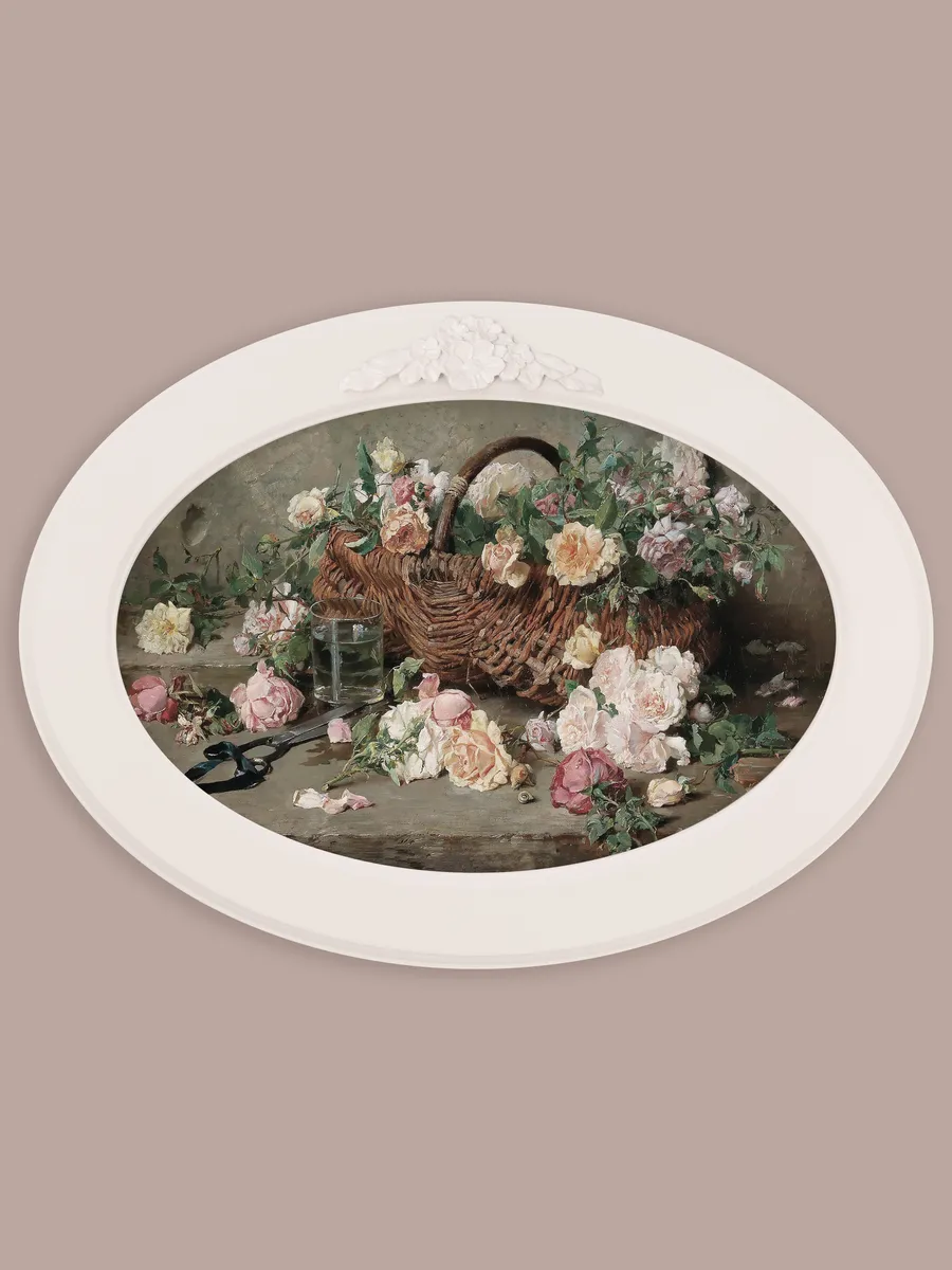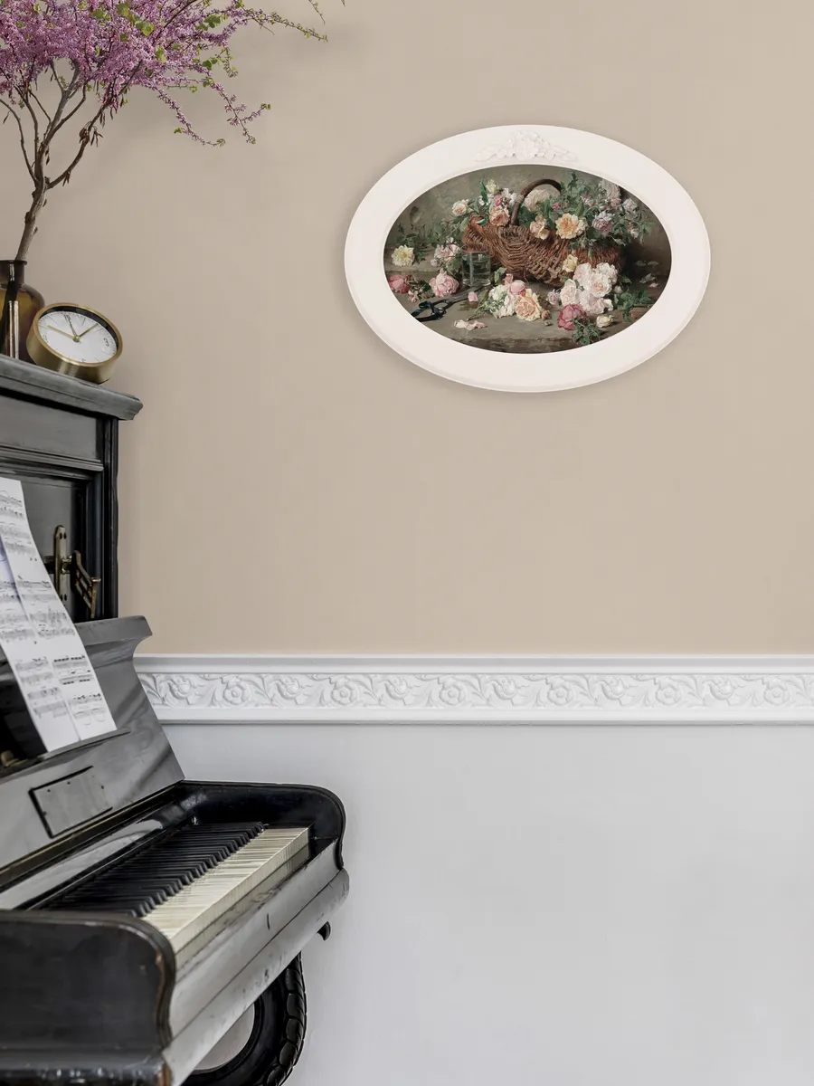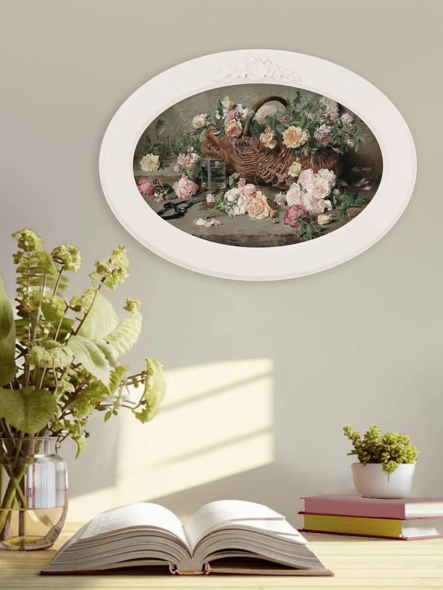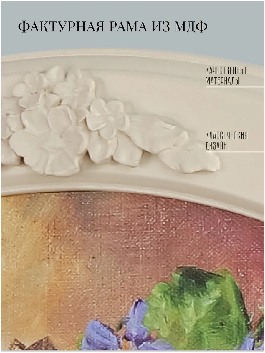 Настенный декор в нежных пастельных тонах. Картина напечатана на натуральном холсте, покрыта матовым лаком в овальной молочной раме с лепниной. Эта картина станет стильным акцентом в вашем интерьере. Она идеально подойдет для оформления стен в различных помещениях: от кухни до спальни, от гостиной до прихожей. Настенное панно выполнено на холсте и отличается яркими цветами, изображающими природу и цветы, что придаст уют и свежесть любому дому или квартире. Декоративное оформление в рамке добавит элегантности и завершенности, делая картину не только предметом декора, но и важной частью атмосферы пространства. Это решение отлично впишется в интерьер офиса, зала или любой комнаты, создавая ощущение счастья и гармонии. Пусть данное предметы искусства придаст вашему дому индивидуальность и изысканный стиль.