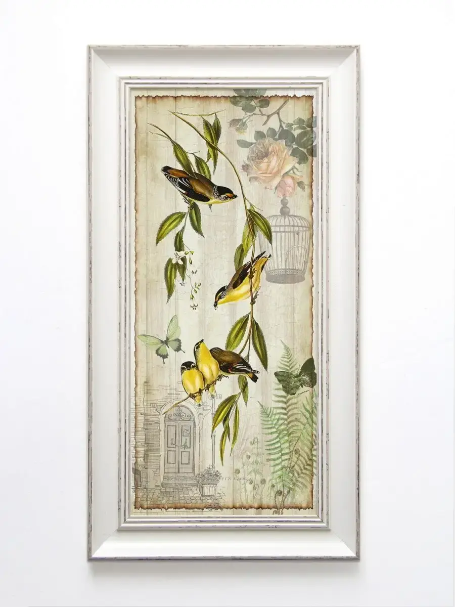 ПТИЦА - повсеместно символ свободы и вселенской души. Размер холста 20х44 см, размер картины с рамой 27,5х51,5 см. Благодаря разнообразию сюжетов, можно собирать коллекцию и составлять композиции на любой вкус. Картина настенная, готовая, в раме из полиуретана, напечатана в высоком разрешении на натуральном холсте, покрыта матовым акриловым лаком для защиты от выцветания. Рама белая с эффектом состаривания. Эта большая картина станет стильным акцентом в вашем интерьере. Она идеально подойдет для оформления стен в различных помещениях: от кухни до спальни, от гостиной до прихожей. Настенное панно выполнено на холсте и отличается яркими цветами, изображающими природу и птиц, что придаст уют и свежесть любому дому или квартире. Декоративное оформление в рамке добавит элегантности и завершенности, делая картину не только предметом декора, но и важной частью атмосферы пространства. Это решение отлично впишется в интерьер офиса, зала или любой комнаты, создавая ощущение счастья и гармонии. Пусть данное предметы искусства придаст вашему дому индивидуальность и изысканный стиль.
