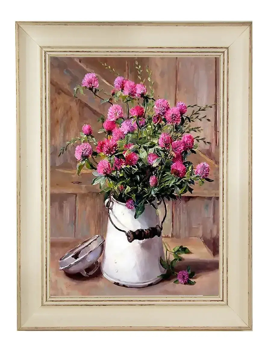 Картина в стиле прованс с нежной цветочной композицией станет прекрасным украшением интерьера квартиры, дачи или загородного дома. Интерьерная картина имитирует масляную живопись, идеально впишется в дизайн спальни, гостиной, кухни, прихожей и других помещений. Репродукция выполнена высококачественной печатью, устойчивой к выцветанию, на натуральном холсте, покрыта лаком без запаха. Винтажная матовая рама для картины белая с эффектом старения, изготовлена из полиуретана. Картина в раме - актуальный во все времена элемент декора, который придает интерьеру статусность, уют и привносит особую атмосферу в пространство. Поэтому картина, оформленная в багет - отличный подарок близкому человеку на любое событие: день рождения, новый год, 8 марта, годовщина свадьбы и т.д. Внешний размер картины 36 на 29 см.
