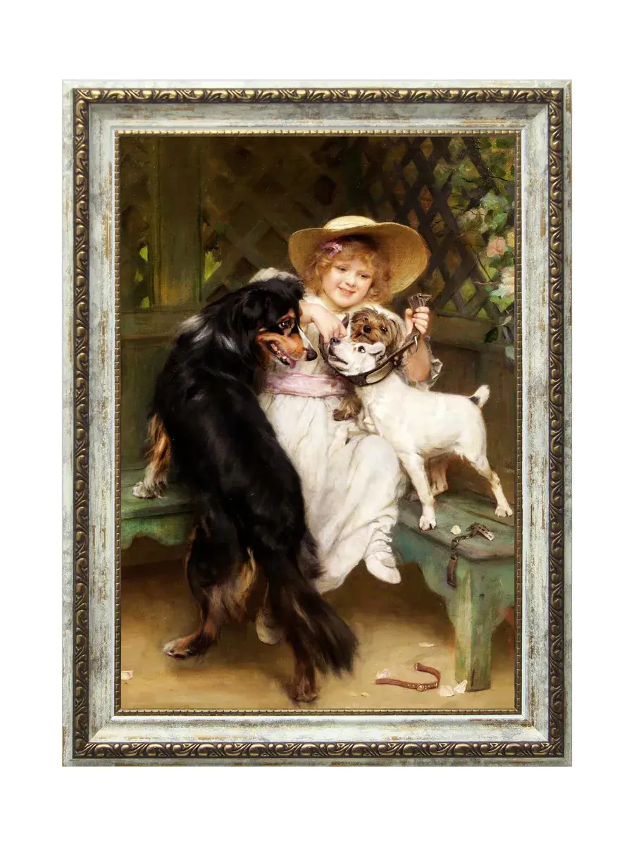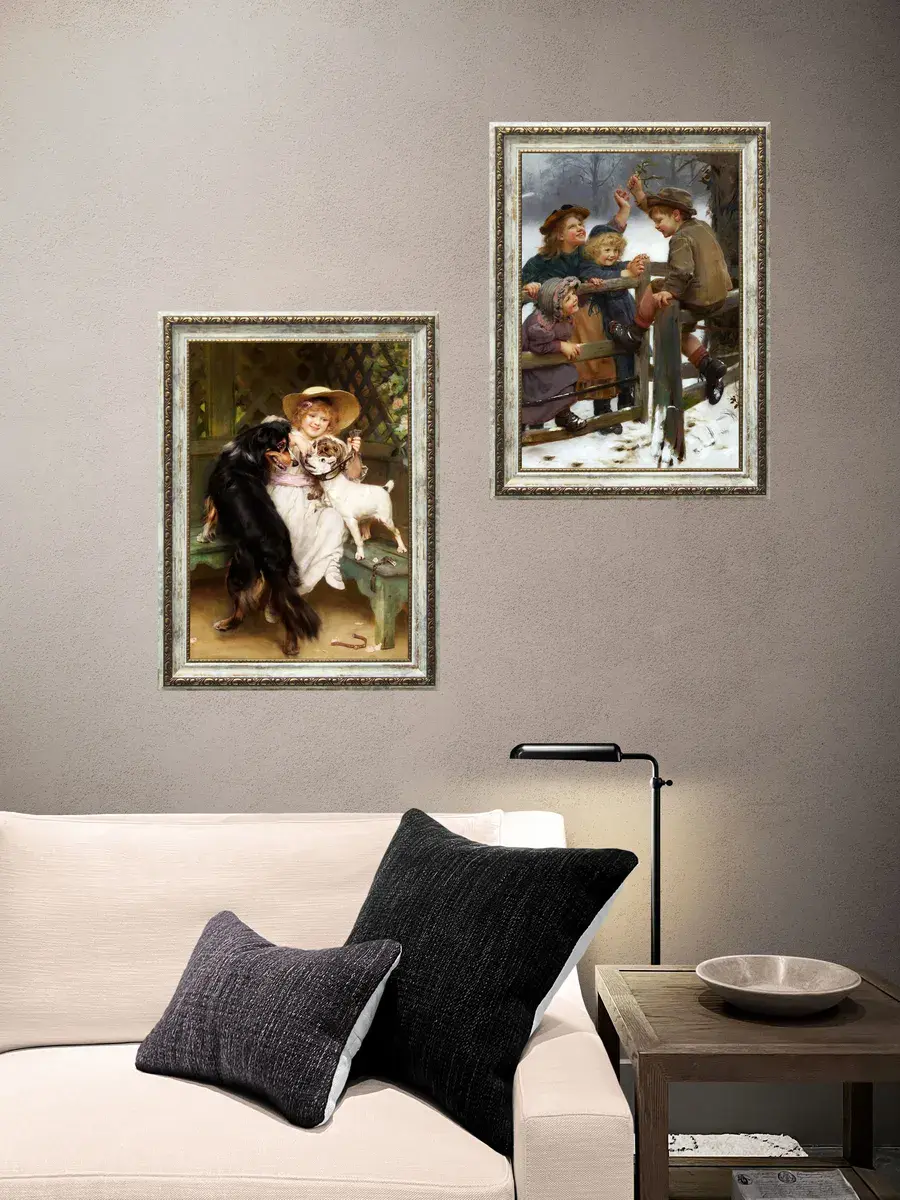Серия картин на натуральном холсте "Дети" станет прекрасным украшением интерьера квартиры, дачи или загородного дома. Картины органично смотрятся сами по себе, в паре, а также в композиции всей коллекции. Интерьерная картина имитирует масляную живопись, идеально впишется в дизайн спальни, гостиной, кухни, прихожей и других помещений. Детская искренность, дружба, наивность, непосредственность и радость, изображенные на картине, привнесут романтичность и особую атмосферу пространству. Картина напечатана на натуральном холсте, в высоком разрешении, покрыта матовым лаком. Основа из ХДФ, что исключает провисание холста. Рама из полиуретана молочная с золотой патиной. Оформление стены картинами в раме добавит уюта в ваш дом. Из картин можно создать коллекцию, дополнить полками в раме. Крепления в комплекте. Размер картины с рамой 29*39 см, размер холста 24х34 см.