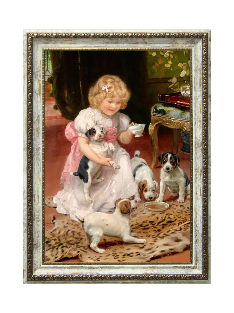 Серия картин на натуральном холсте "Дети" станет прекрасным украшением интерьера квартиры, дачи или загородного дома. Картины органично смотрятся сами по себе, в паре, а также в композиции всей коллекции. Интерьерная картина имитирует масляную живопись, идеально впишется в дизайн спальни, гостиной, кухни, прихожей и других помещений. Детская искренность, дружба, наивность, непосредственность и радость, изображенные на картине, привнесут романтичность и особую атмосферу пространству. Картина напечатана на натуральном холсте, в высоком разрешении, покрыта матовым лаком. Основа из ХДФ, что исключает провисание холста. Рама из полиуретана молочная с золотой патиной. Оформление стены картинами в раме добавит уюта в ваш дом. Из картин можно создать коллекцию, дополнить полками в раме. Крепления в комплекте. Размер картины с рамой 29*39 см, размер холста 24х34 см.