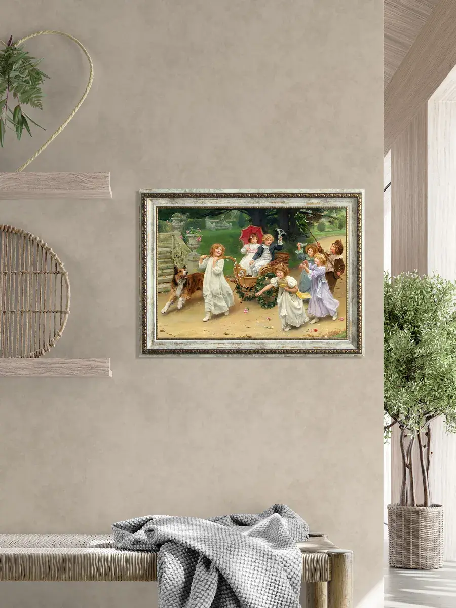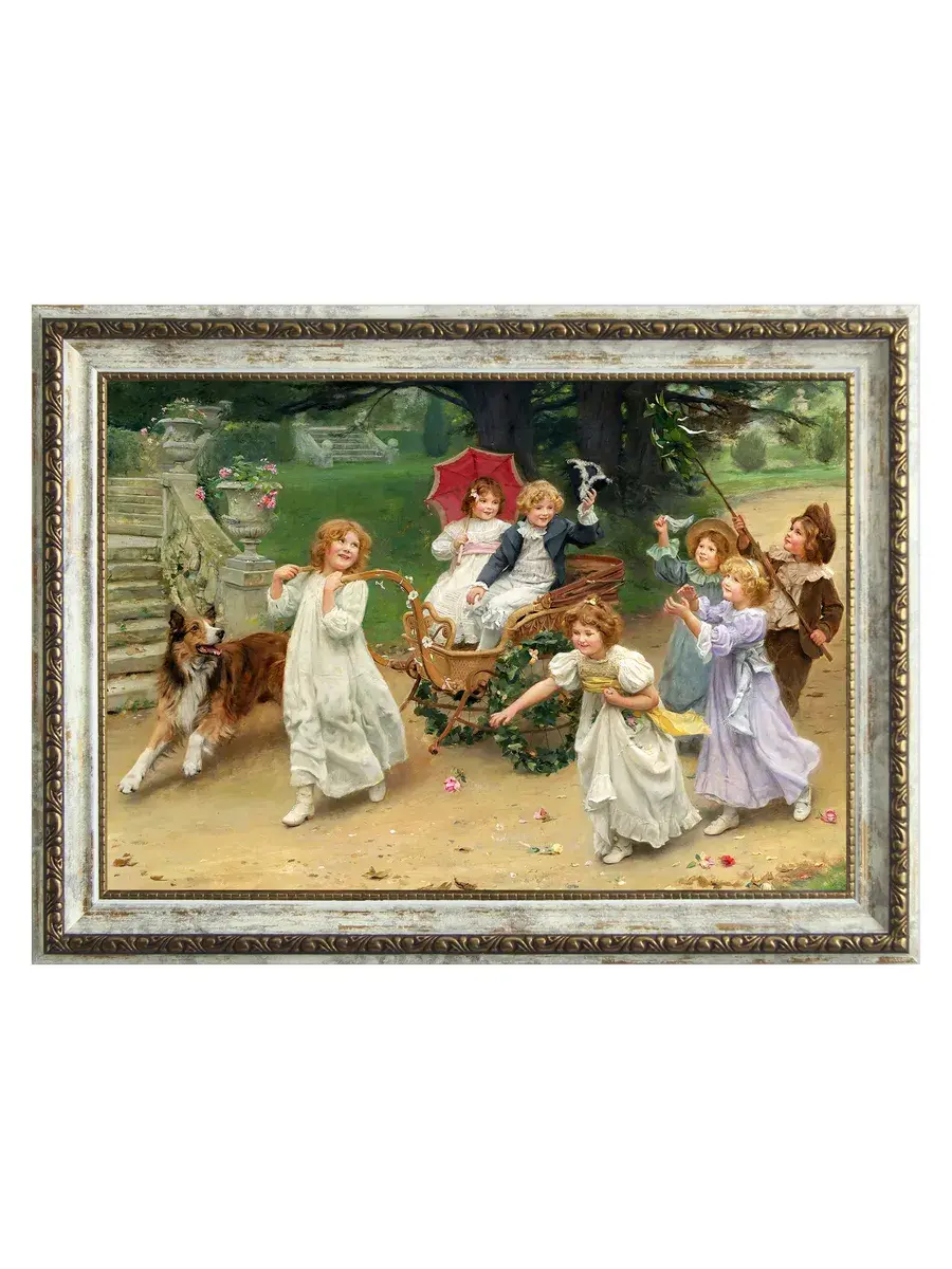 Серия картин на натуральном холсте "Дети" станет прекрасным украшением интерьера квартиры, дачи или загородного дома. Картины органично смотрятся сами по себе, в паре, а также в композиции всей коллекции. Интерьерная картина имитирует масляную живопись, идеально впишется в дизайн спальни, гостиной, кухни, прихожей и других помещений. Детская искренность, дружба, наивность, непосредственность и радость, изображенные на картине, привнесут романтичность и особую атмосферу пространству. Картина напечатана на натуральном холсте, в высоком разрешении, покрыта матовым лаком. Основа из ХДФ, что исключает провисание холста. Рама из полиуретана молочная с золотой патиной. Оформление стены картинами в раме добавит уюта в ваш дом. Из картин можно создать коллекцию, дополнить полками в раме. Крепления в комплекте. Размер картины с рамой 29*39 см, размер холста 24х34 см.