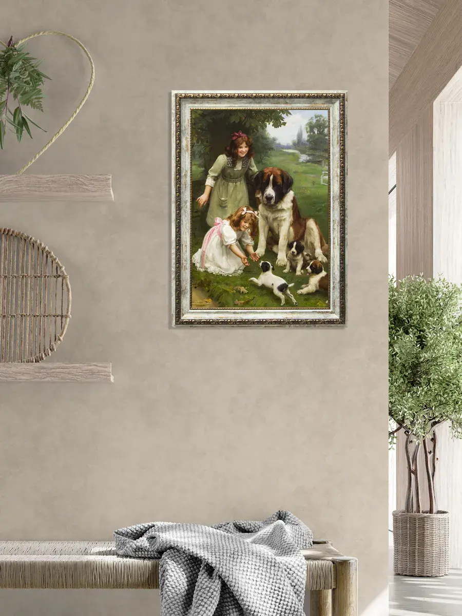 Серия картин на натуральном холсте "Дети" станет прекрасным украшением интерьера квартиры, дачи или загородного дома. Картины органично смотрятся сами по себе, в паре, а также в композиции всей коллекции. Интерьерная картина имитирует масляную живопись, идеально впишется в дизайн спальни, гостиной, кухни, прихожей и других помещений. Детская искренность, дружба, наивность, непосредственность и радость, изображенные на картине, привнесут романтичность и особую атмосферу пространству. Картина напечатана на натуральном холсте, в высоком разрешении, покрыта матовым лаком. Основа из ХДФ, что исключает провисание холста. Рама из полиуретана молочная с золотой патиной. Оформление стены картинами в раме добавит уюта в ваш дом. Из картин можно создать коллекцию, дополнить полками в раме. Крепления в комплекте. Размер картины с рамой 29*39 см, размер холста 24х34 см.