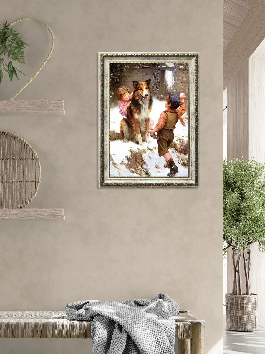 Серия картин на натуральном холсте "Дети" станет прекрасным украшением интерьера квартиры, дачи или загородного дома. Картины органично смотрятся сами по себе, в паре, а также в композиции всей коллекции. Интерьерная картина имитирует масляную живопись, идеально впишется в дизайн спальни, гостиной, кухни, прихожей и других помещений. Детская искренность, дружба, наивность, непосредственность и радость, изображенные на картине, привнесут романтичность и особую атмосферу пространству. Картина напечатана на натуральном холсте, в высоком разрешении, покрыта матовым лаком. Основа из ХДФ, что исключает провисание холста. Рама из полиуретана молочная с золотой патиной. Оформление стены картинами в раме добавит уюта в ваш дом. Из картин можно создать коллекцию, дополнить полками в раме. Крепления в комплекте. Размер картины с рамой 29*39 см, размер холста 24х34 см.
