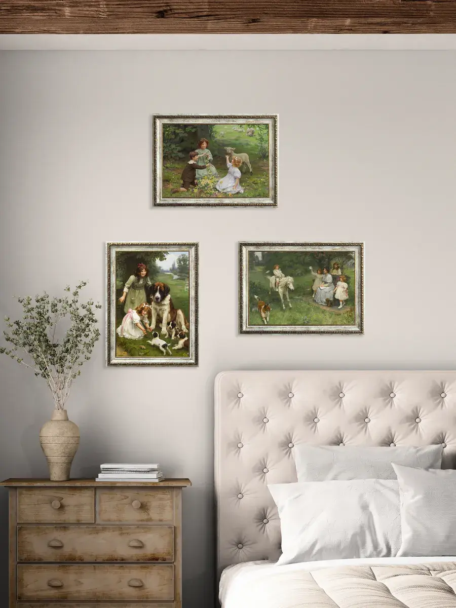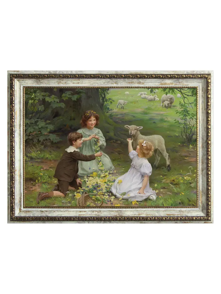 Серия картин на натуральном холсте "Дети" станет прекрасным украшением интерьера квартиры, дачи или загородного дома. Картины органично смотрятся сами по себе, в паре, а также в композиции всей коллекции. Интерьерная картина имитирует масляную живопись, идеально впишется в дизайн спальни, гостиной, кухни, прихожей и других помещений. Детская искренность, дружба, наивность, непосредственность и радость, изображенные на картине, привнесут романтичность и особую атмосферу пространству. Картина напечатана на натуральном холсте, в высоком разрешении, покрыта матовым лаком. Основа из ХДФ, что исключает провисание холста. Рама из полиуретана молочная с золотой патиной. Оформление стены картинами в раме добавит уюта в ваш дом. Из картин можно создать коллекцию, дополнить полками в раме. Крепления в комплекте. Размер картины с рамой 29*39 см, размер холста 24х34 см.