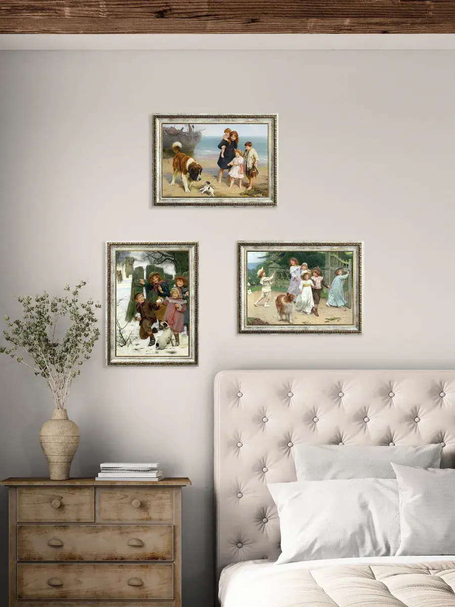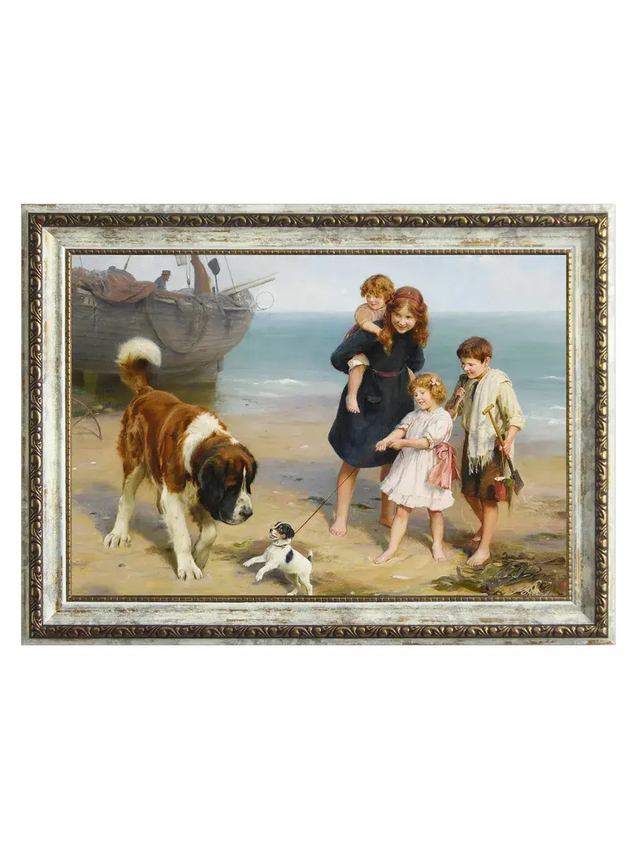 Серия картин на натуральном холсте "Дети" станет прекрасным украшением интерьера квартиры, дачи или загородного дома. Картины органично смотрятся сами по себе, в паре, а также в композиции всей коллекции. Интерьерная картина имитирует масляную живопись, идеально впишется в дизайн спальни, гостиной, кухни, прихожей и других помещений. Детская искренность, дружба, наивность, непосредственность и радость, изображенные на картине, привнесут романтичность и особую атмосферу пространству. Картина напечатана на натуральном холсте, в высоком разрешении, покрыта матовым лаком. Основа из ХДФ, что исключает провисание холста. Рама из полиуретана молочная с золотой патиной. Оформление стены картинами в раме добавит уюта в ваш дом. Из картин можно создать коллекцию, дополнить полками в раме. Крепления в комплекте. Размер картины с рамой 29*39 см, размер холста 24х34 см.