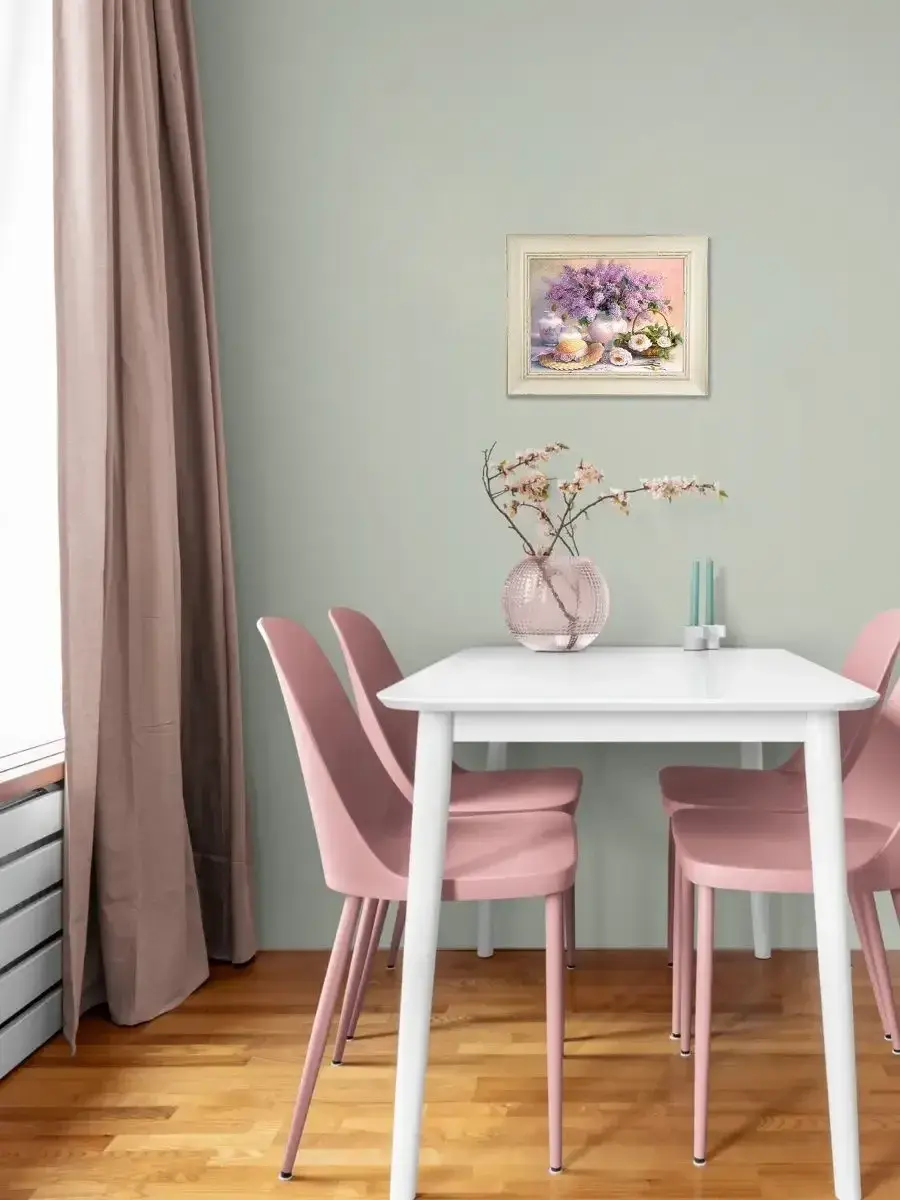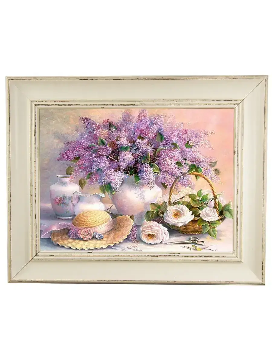 Картина с нежной цветочной композицией станет прекрасным украшением интерьера квартиры, дачи или загородного дома. Интерьерная картина имитирует масляную живопись, идеально впишется в дизайн спальни, гостиной, кухни, прихожей и других помещений. Репродукция выполнена высококачественной печатью, устойчивой к выцветанию, на натуральном холсте, покрыта лаком без запаха. Винтажная матовая рама для картины белая с эффектом старения, изготовлена из полиуретана. Картина в раме - актуальный во все времена элемент декора, который придает интерьеру статусность, уют и привносит особую атмосферу в пространство. Поэтому картина, оформленная в багет - отличный подарок.