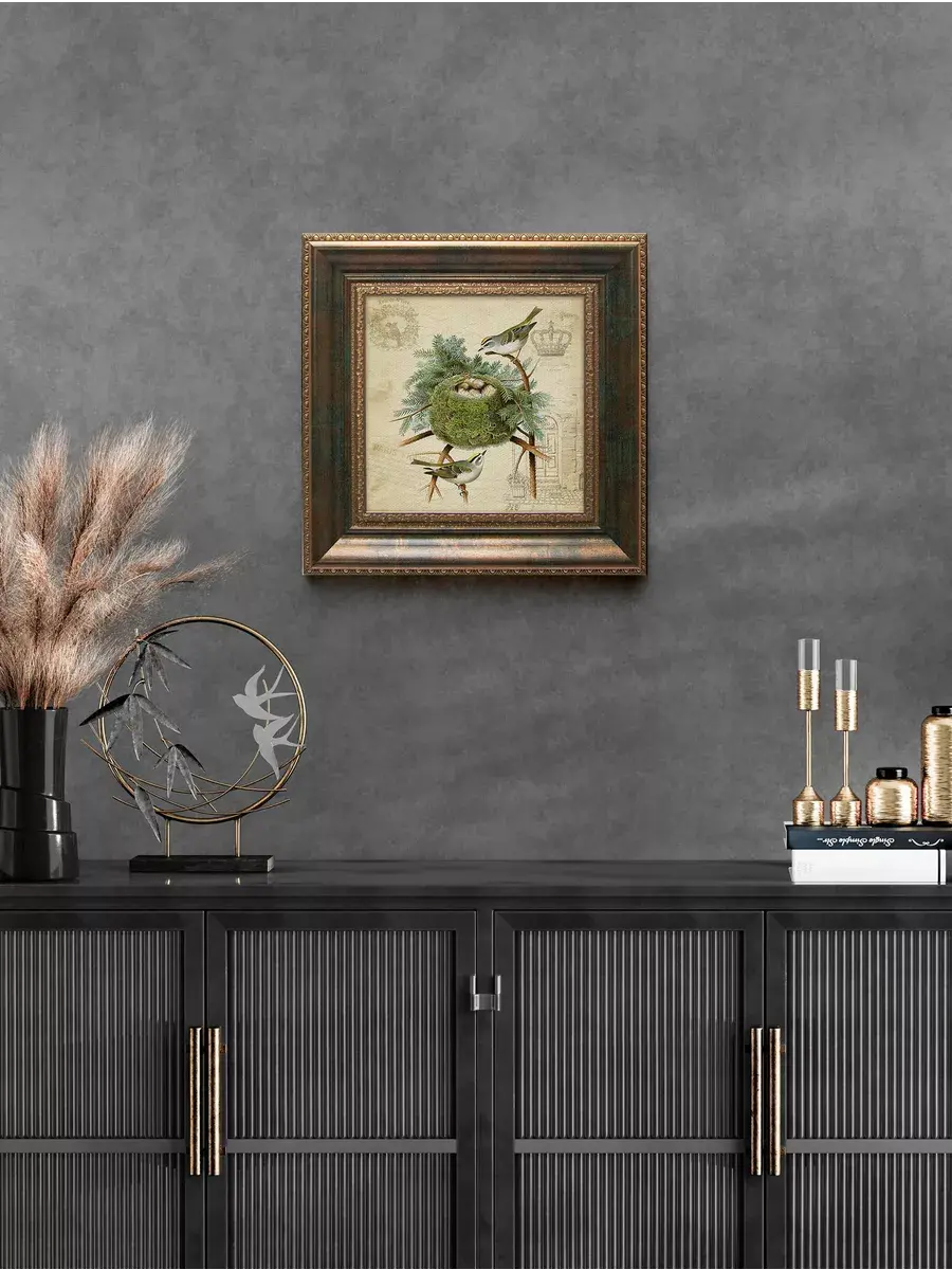 ПТИЦА - символ свободы и вселенской души. Прекрасный символичный подарок семейной паре, подруге или близким людям. Картины изготовлены в России. Настенный декор в раме, это современный способ украсить стены вашего дома, создать коллекцию ярких необычных картины дизайна Elenadecor. Картина напечатана на натуральном холсте, покрыта лаком. Для защиты от провисания холст наклеен на хдф. Рама из полиуретана полуматовая благородного темно-зеленого цвета с бронзовым отливом. Картины небольшого размера 30х30 см по раме, холст 20*20 см, для создания коллекций. Упакованы в коробку, крепление для стены в комплекте.