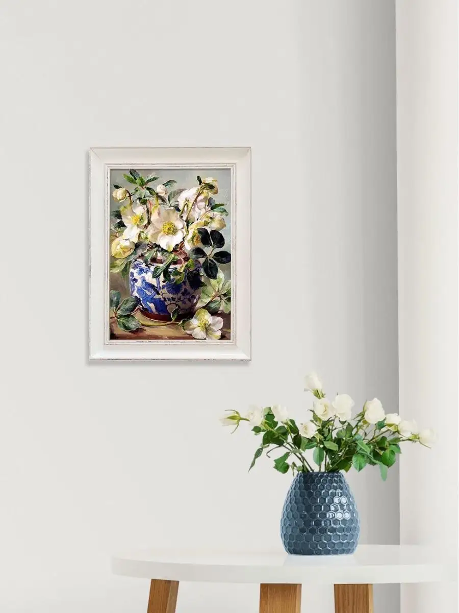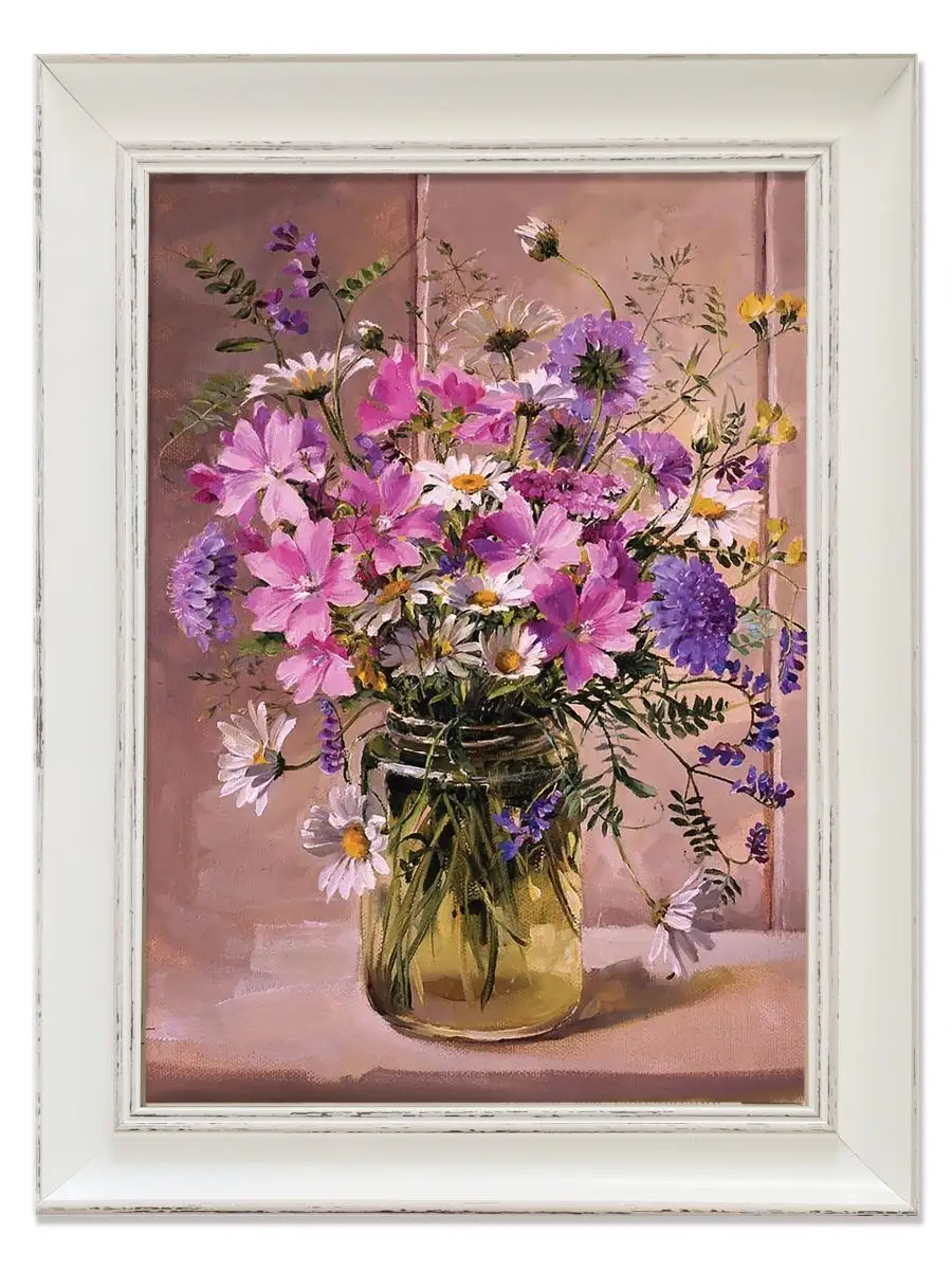 Картина с цветами . Размер холста 24х34 см, размер картины в раме 30х40см. Картину не сложно повесить на стену, в комплекте шуруп с дюбелем и зубчатый крепеж на раме. Картина настенная, готовая, в раме из полиуретана, напечатана в высоком разрешении на натуральном холсте, покрыта матовым акриловым лаком для защиты от выцветания. Рама из полиуретана, белого цвета с эффектом старения. Картина подойдет для гостиной , детской, прихожей, спальни и для кухни. Украшение для дома, подарок в дом. Картина упакована в пакет и коробку. Разнообразие цветов дает возможность собрать коллекцию картин, наполнить свой интерьер яркими красками и уютом. Пионы, сирень, розы, лаванда, флоксы, ландыши, незабудки, полевые цветы , цветущая яблоня , маки, ромашки и многие другие цветы.