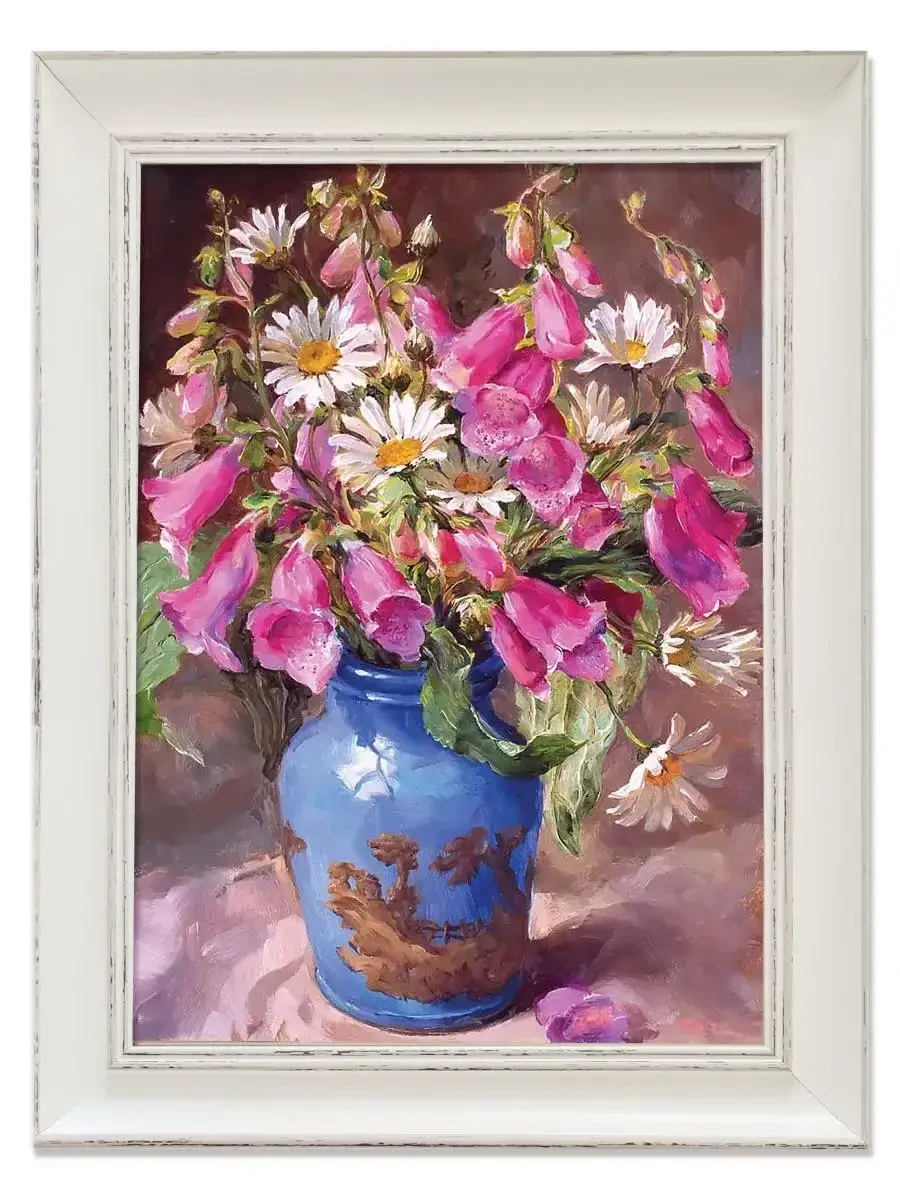 Картина с цветами. Размер холста 24х34 см, размер картины в раме 30х40см. Картину не сложно повесить на стену, в комплекте шуруп с дюбелем и зубчатый крепеж на раме. Картина настенная, готовая, в раме из полиуретана, напечатана в высоком разрешении на натуральном холсте, покрыта матовым акриловым лаком для защиты от выцветания. Рама из полиуретана, белого цвета с эффектом старения. Картина подойдет для гостиной , детской, прихожей, спальни и для кухни. Украшение для дома, подарок в дом. Картина упакована в пакет и коробку. Разнообразие цветов дает возможность собрать коллекцию картин, наполнить свой интерьер яркими красками и уютом. Пионы, сирень, розы, лаванда, флоксы, ландыши, незабудки, полевые цветы, цветущая яблоня, маки, ромашки и многие другие цветы.