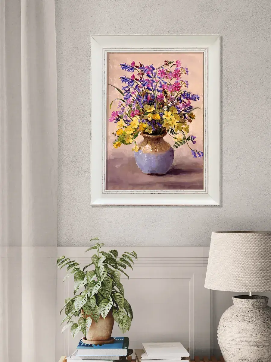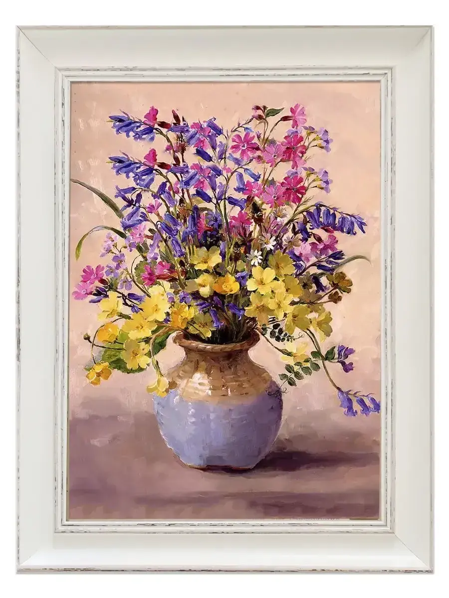 Картина с цветами . Размер холста 24х34 см, размер картины в раме 30х40см. Картину не сложно повесить на стену, в комплекте шуруп с дюбелем и зубчатый крепеж на раме. Картина настенная, готовая, в раме из полиуретана, напечатана в высоком разрешении на натуральном холсте, покрыта матовым акриловым лаком для защиты от выцветания. Рама из полиуретана, белого цвета с эффектом старения. Картина подойдет для гостиной , детской, прихожей, спальни и для кухни. Украшение для дома, подарок в дом. Картина упакована в пакет и коробку. Разнообразие цветов дает возможность собрать коллекцию картин, наполнить свой интерьер яркими красками и уютом. Пионы, сирень, розы, лаванда, флоксы, ландыши, незабудки, полевые цветы , цветущая яблоня , маки, ромашки и многие другие цветы.