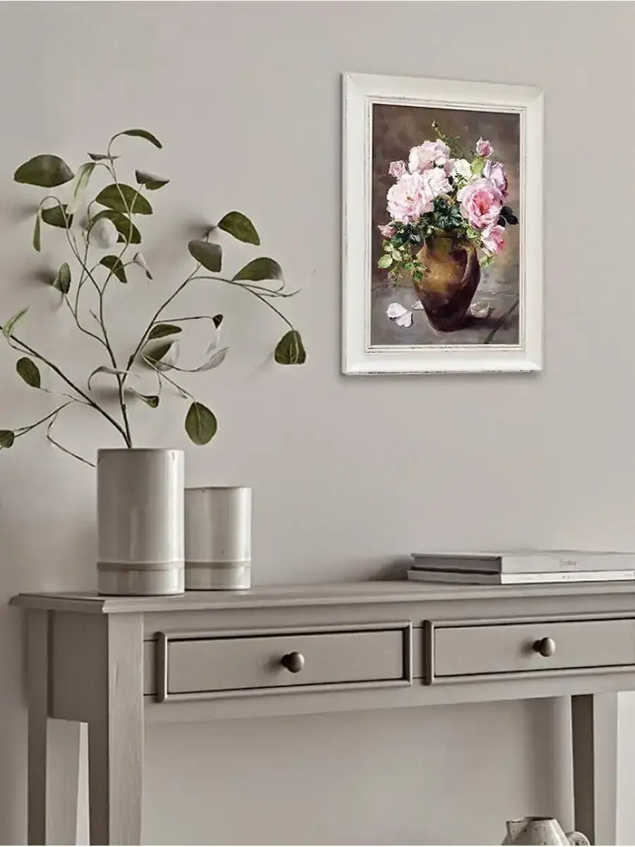 Картина с цветами . Размер холста 24х34 см, размер картины в раме 30х40см. Картину не сложно повесить на стену, в комплекте шуруп с дюбелем и зубчатый крепеж на раме. Картина настенная, готовая, в раме из полиуретана, напечатана в высоком разрешении на натуральном холсте, покрыта матовым акриловым лаком для защиты от выцветания. Рама из полиуретана, белого цвета с эффектом старения. Картина подойдет для гостиной , детской, прихожей, спальни и для кухни. Украшение для дома, подарок в дом. Картина упакована в пакет и коробку. Разнообразие цветов дает возможность собрать коллекцию картин, наполнить свой интерьер яркими красками и уютом. Пионы, сирень, розы, лаванда, флоксы, ландыши, незабудки, полевые цветы , цветущая яблоня , маки, ромашки и многие другие цветы.