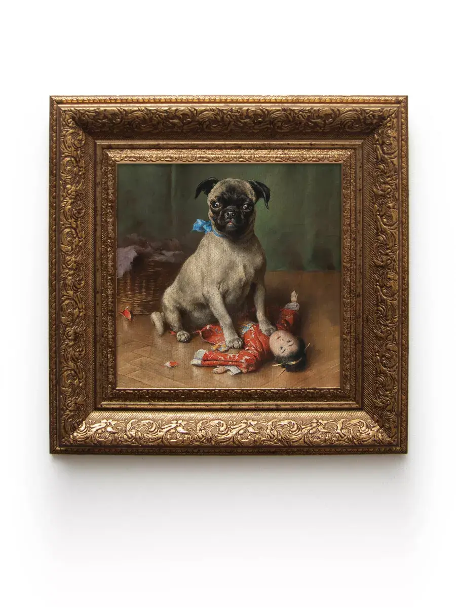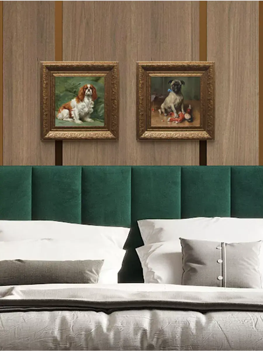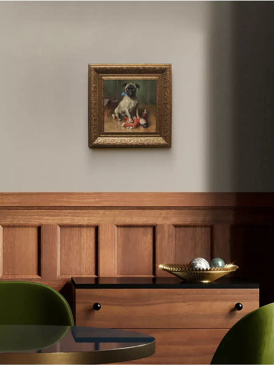 Картина художника Эдуарда Мане Кинг Чарльза с изображением собак для создания коллекций в классическом стиле. Украшение для стен дома, гостиной, прихожей, спальни, детской, оформления кабинетана, для создания уютной атмосферы на даче. Картины в золотой классической раме подойдет для оформления стен в кафе и ресторане. Картина напечатана на натуральном холсте, покрыта лаком. Для защиты от провисания холст наклеен на хдф. Рама широкая из полиуретана, матовая с эффектом старения. Размера холст 20*20 см. Ширина рамы 5,5 см. Картина - это отличный подарок. Крепление для стены в комплекте.