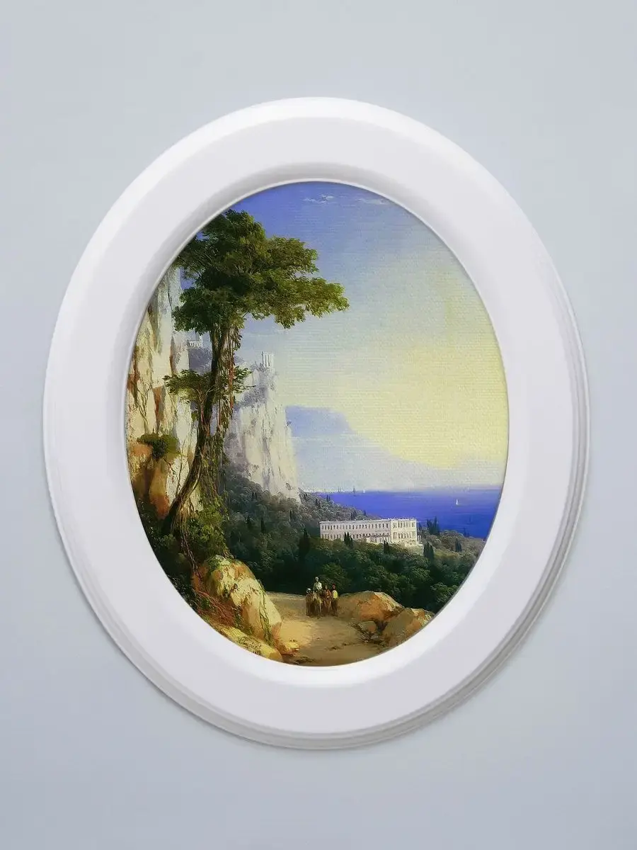 Настенный декор в нежных пастельный тонах. Картина напечатана на натуральном холсте, покрыта матовым лаком оформлена в овальную белую раму. Картина в раме "Айвазовский – Вид в Ореанде"" станет прекрасным украшением интерьера. Эта не большая картина станет стильным акцентом в интерьере. Она идеально подойдет для оформления стен в различных помещениях: от кухни до спальни, от гостиной до прихожей. Настенное панно выполнено на холсте. Декоративное оформление в рамке добавит элегантности и завершенности, делая картину не только предметом декора, но и важной частью атмосферы вашего пространства. Это решение отлично впишется в интерьер офиса, зала или любой комнаты, создавая ощущение счастья и гармонии. Пусть данное предметы искусства придаст вашему дому индивидуальность и изысканный стиль.