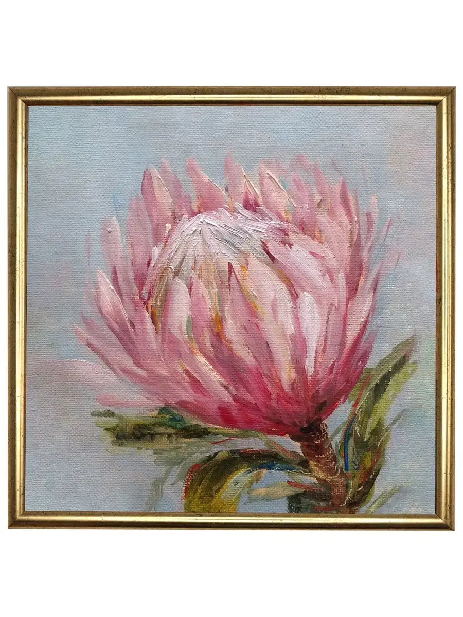 Она напечатана на натуральном холсте, покрыта лаком. Для исключения провисания холста, подложка выполнена из ХДФ. Золотая багетная рама по периметру. Крепления в комплекте. Размер картины с рамой 33*33 см.
