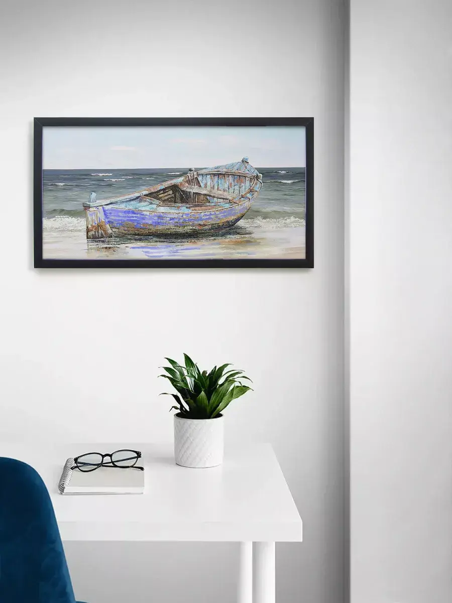 Эта картина станет замечательным элементом декора для любого интерьера. Она создана для тех, кто ценит искусство и хочет добавить в свой дом или офис нотки эстетики. Изображение лодок на фоне моря привносит спокойствие и гармонию, идеально вписываясь в атмосферу современного пространства. Картина в горизонтальном варианте для стен спальни, зала или кухни.